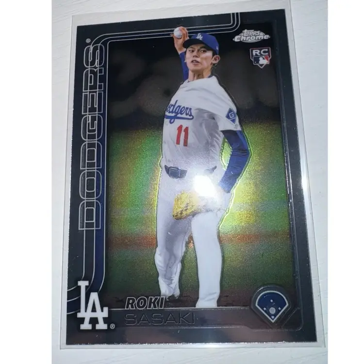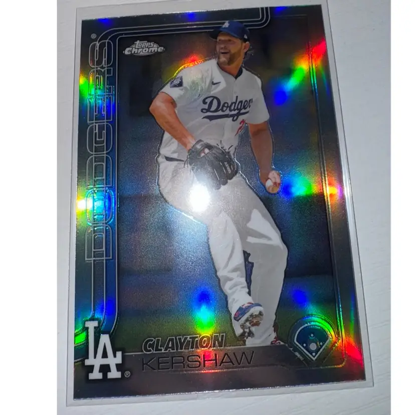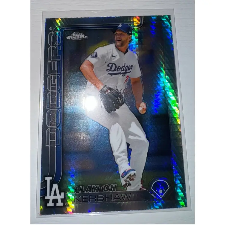 This 6 Card Lot Includes: Dodgers team card 2022 Topps Foilboard /875 Clayton Kershaw 2025 Topps Chrome Prism Refractor Clayton Kershaw 2025 Topps Chrome Refractor Roki Sasaki 2025 Topps Chrome Rc Yoshinobu Yamamoto 2024 Topps Chrome Rc Yoshinobu Yamamoto 2024 Topps Holiday