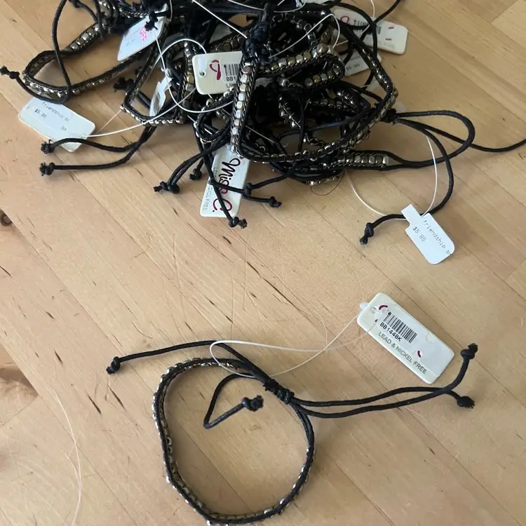 Lot of 14 black pull cord bracelets with gold metal twist lining gold and silver bead accents Adjustable up to 13.5”