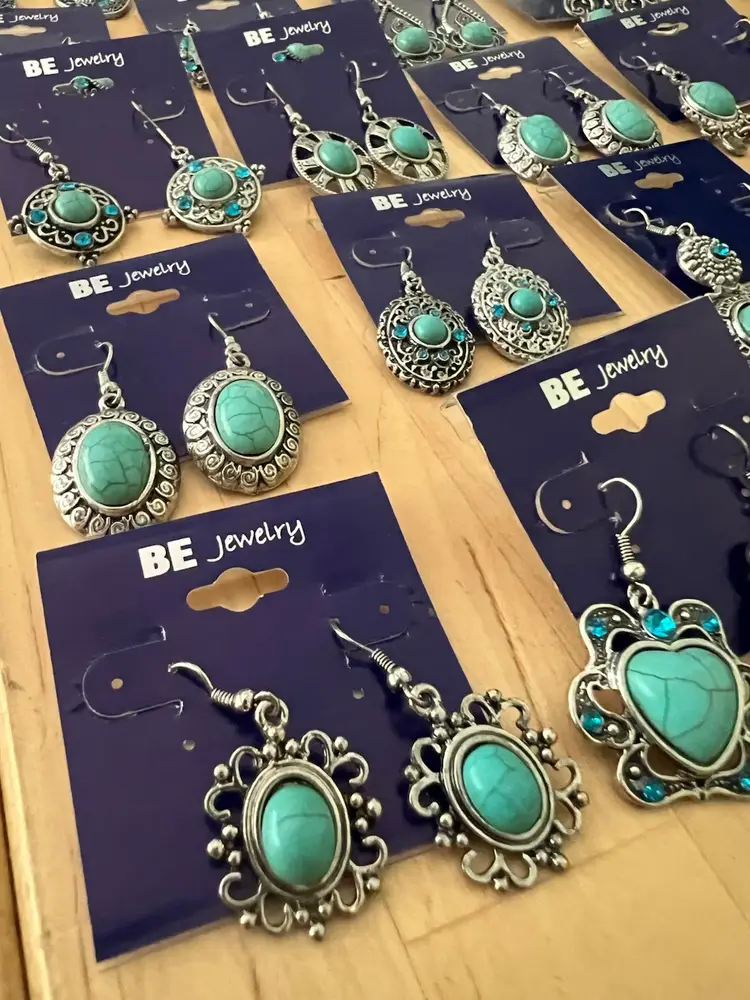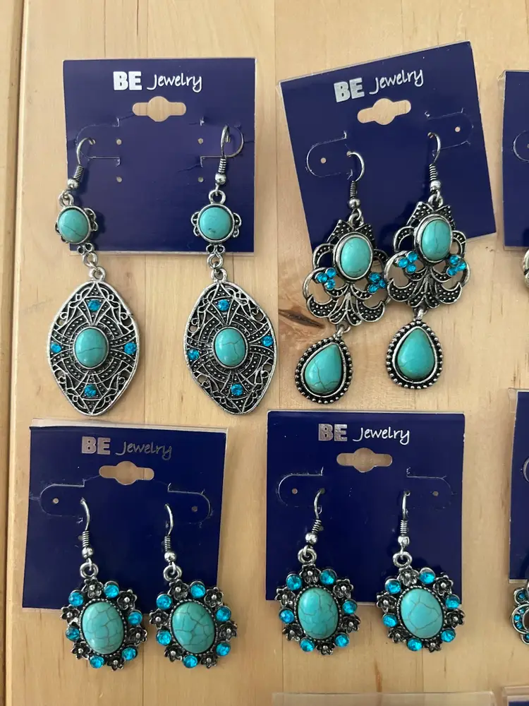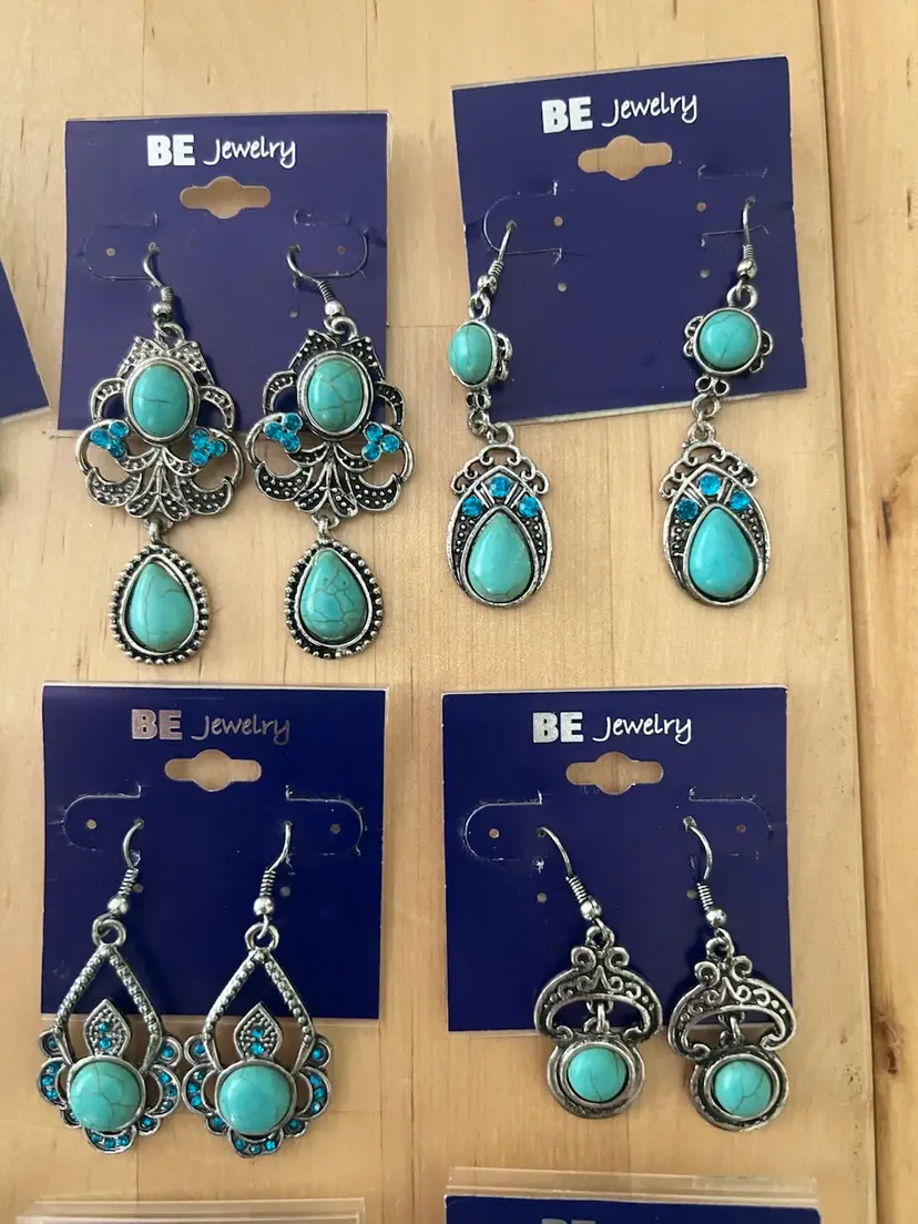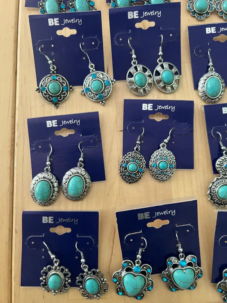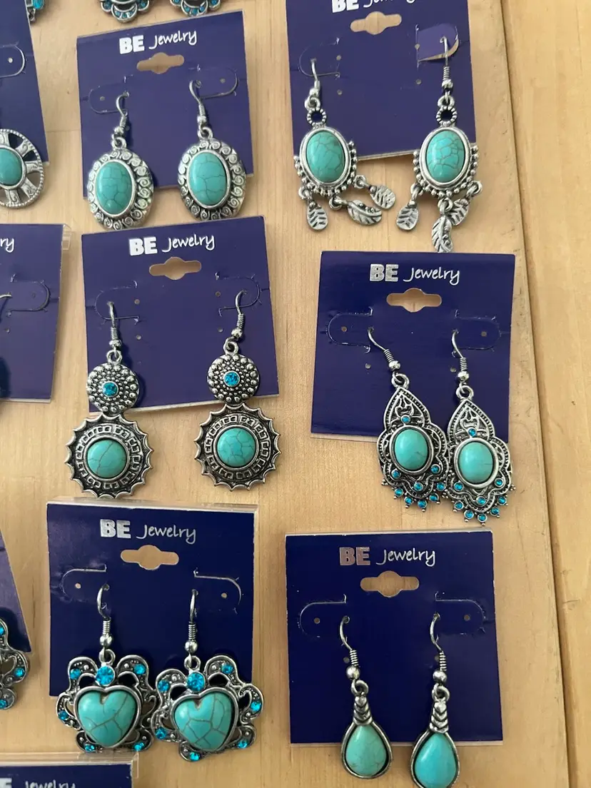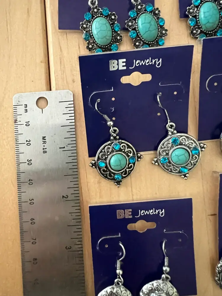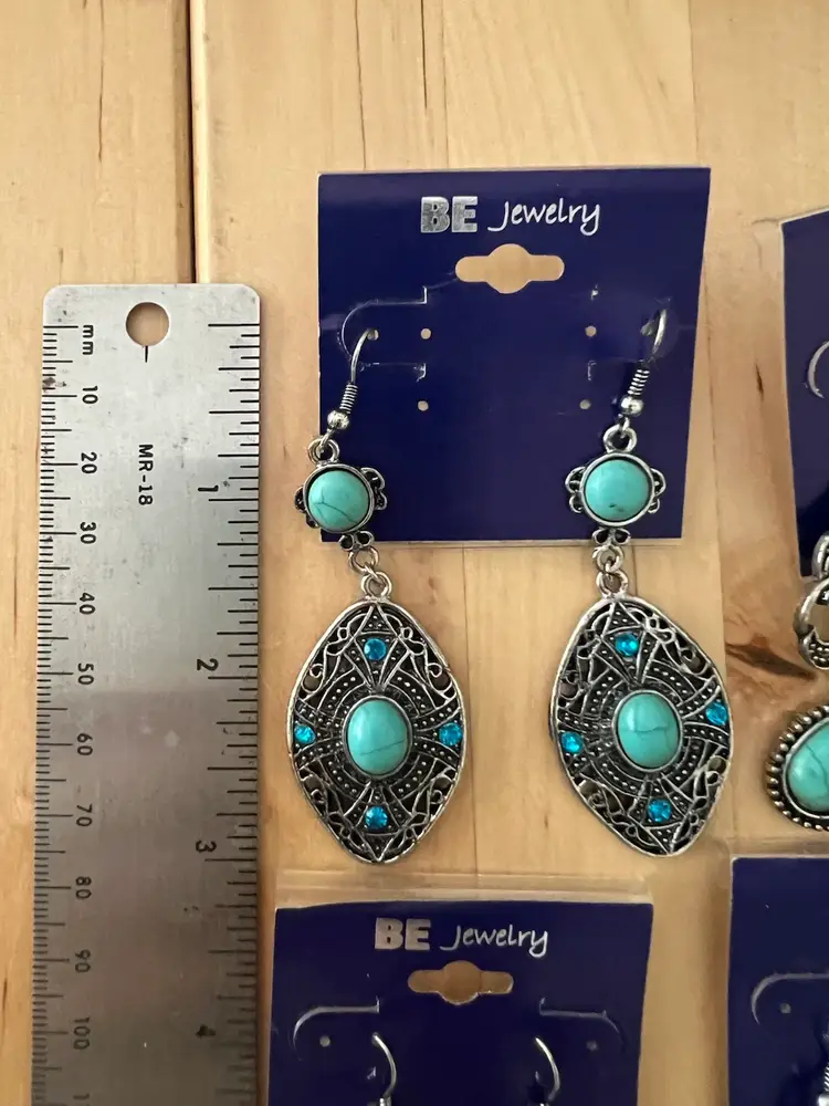 2-3” long silver tone dangle earrings assorted styles, some doubles Howlite cabochons See photos for detail Lot of 21 pair New old stock