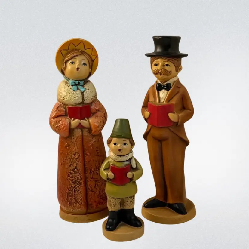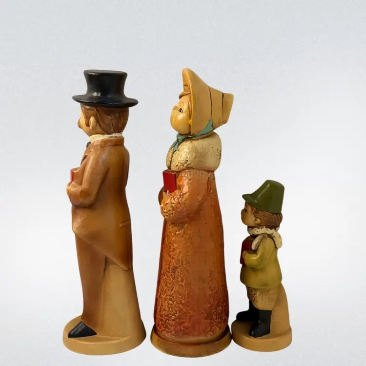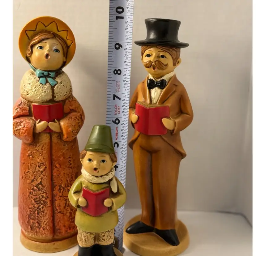 Family of three colorful resin caroling figurines with Japan label. Condition: Excellent vintage condition. Measurements 6” to 10” Tall. Please see pictures for condition and measurements as they are part of the description. NC-2 Thank you for looking!
