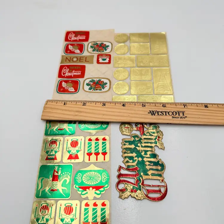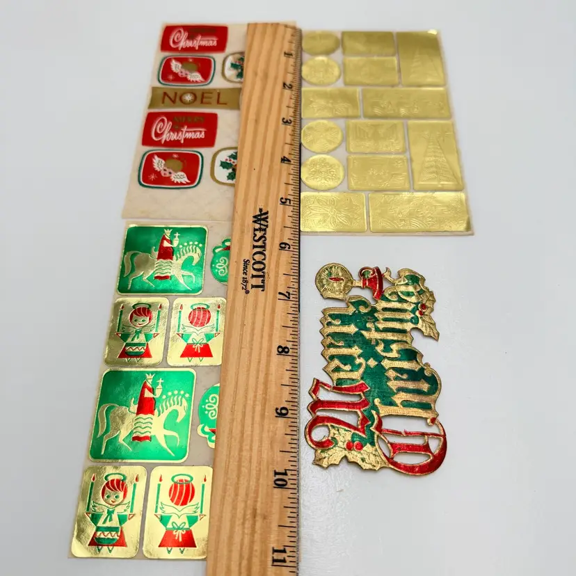 As shown Sizes vary Some are used. Merry Christmas sticker is bent