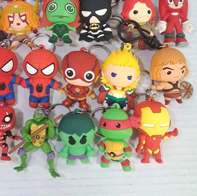 Type: 3D Figural Keychain Bag Clip Lot Quantity: 35 total figures Brands/Franchises: Marvel, DC, He-Man, TMNT, Sonic Featured Characters: Knuckles, All Might, Spider-Man, Batman, Iron Man, Flash, Captain America, and more Condition: Pre-owned, mixed characters and series Description: Lot of 35 assorted 3D figural keychain bag clips featuring characters from Marvel, DC, TMNT, Sonic, He-Man, and more. Includes fan favorites such as Knuckles, All Might, Spider-Man, Batman, Iron Man, Flash, and Captain America. Perfect for collectors or resellers. Review all photos carefully before purchase.