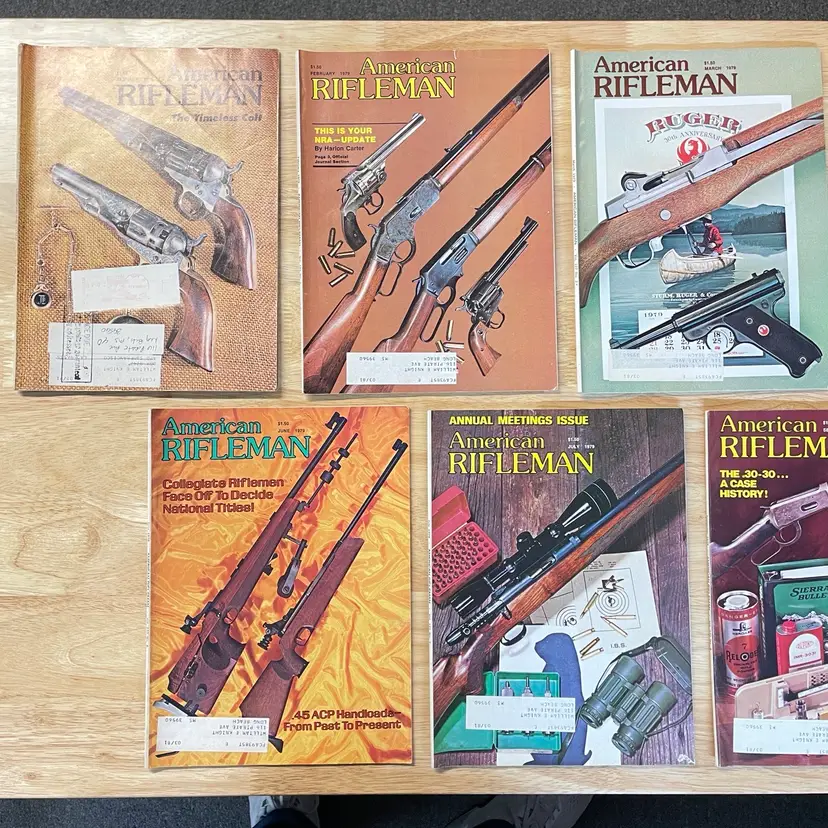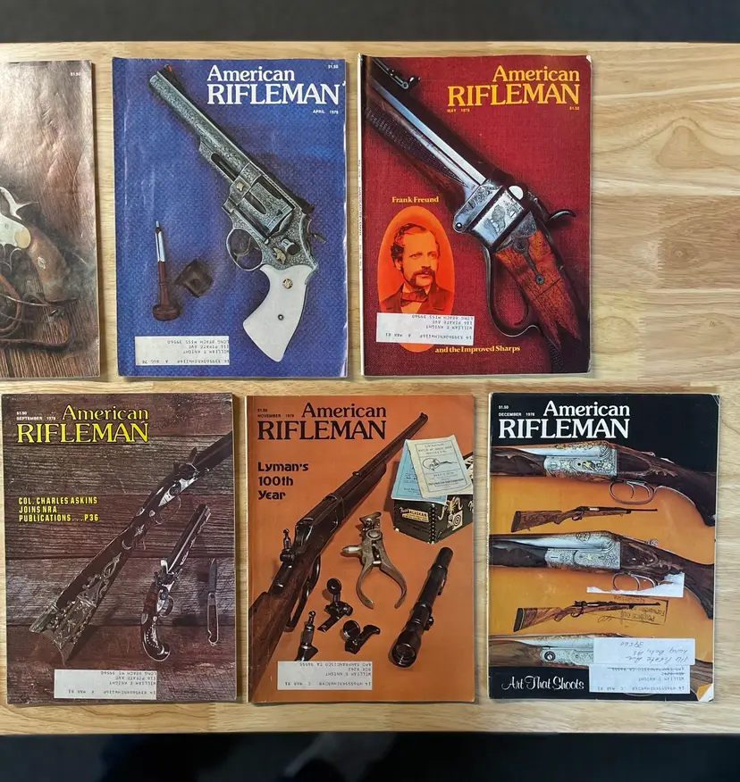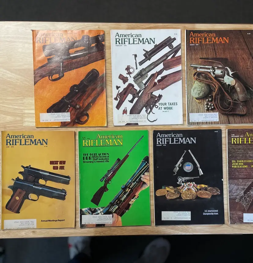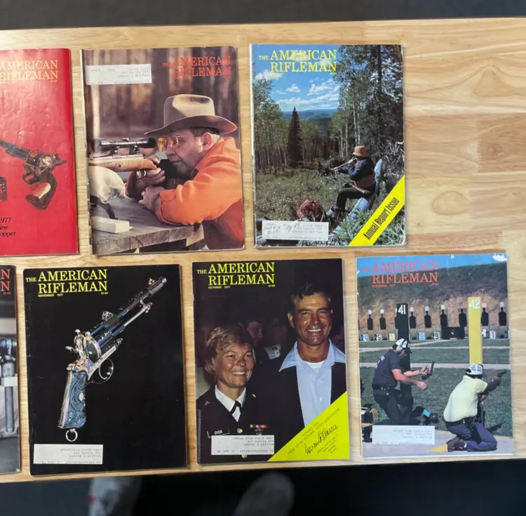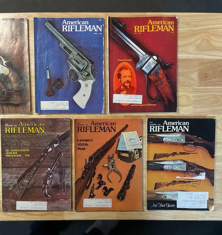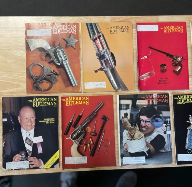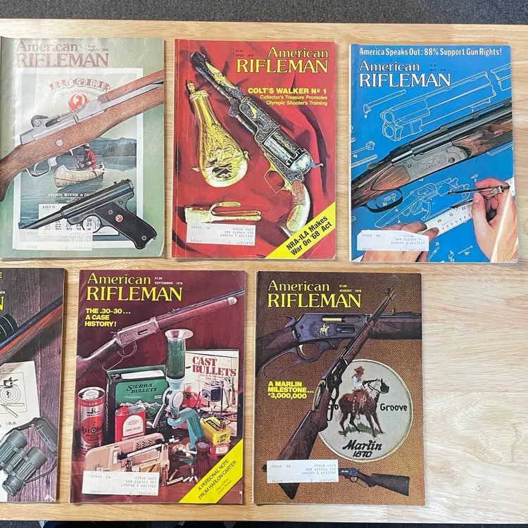 2 Gun Annual magazines (Fall of 1975, and Winter of 1976). 6 American Rifleman magazines from 1975 11 American Rifleman magazines from 1977 11 American Rifleman magazines from 1978 9 American Rifleman magazines from 1979