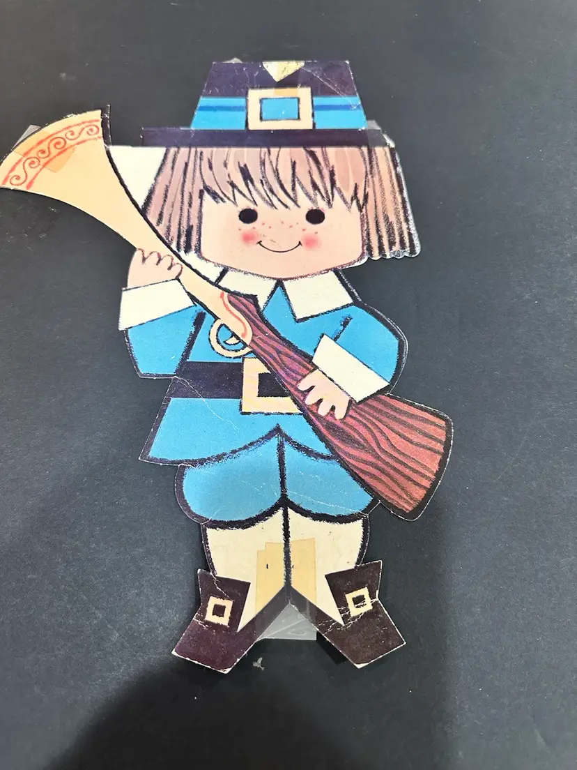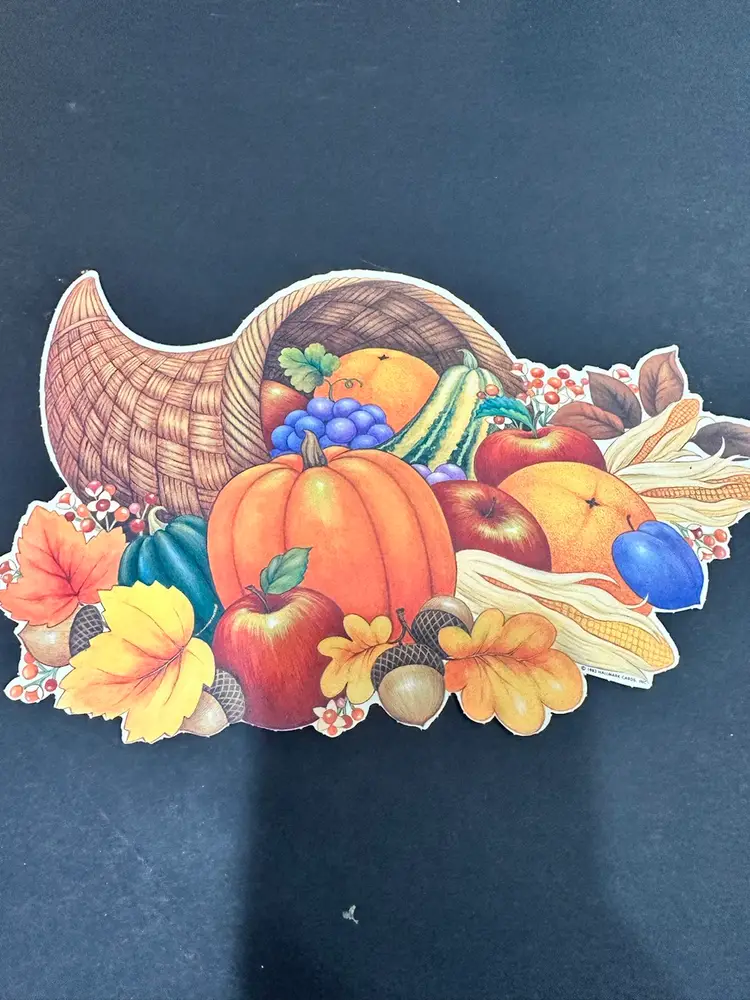 Add a pop of vintage charm to your holiday decor with this delightful lot of 5 classic die-cuts! Perfect for Thanksgiving, fall, or Halloween displays, these vibrant decorations range in size with the largest standing at 10 inches high, making them versatile and eye-catching accents.