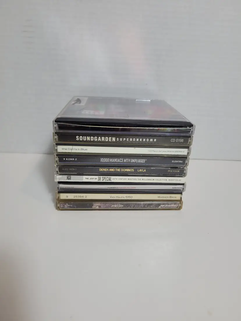 Lot of 9 Mixed Grunge & Rock Cd's See Description Pre-Owned - Light wear from normal use Lot Includes: Maroon 5 - Hands All Over Ex-Library Edition The Corrs - In Blue Ex-Library Edition Centipede HZ by Animal Collective Limited Edition Ex-Library Edition Derek And The Dominos - Layla Ex-Library Edition Pearl Jam 38 Special - The Best Of The Millennium Collection Sound Garden - SuperUnKnown Van Halen - 5150 10000 maniacs - MTV Unplugged See ALL photos for best description Contact me with any questions Ships fast