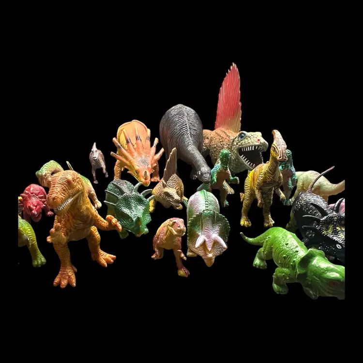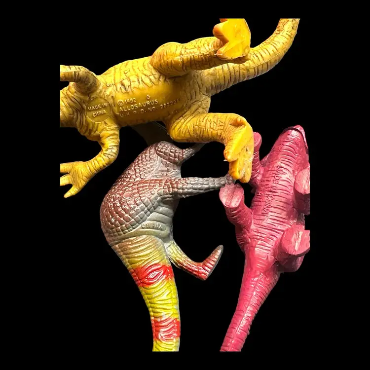 3 pounds of hard rubber dinosaurs all either marked 1990’s or not marked with age.