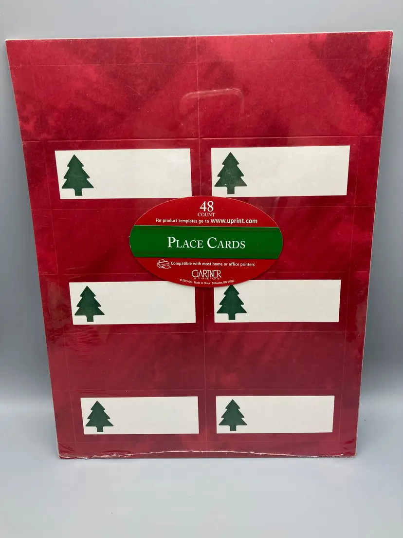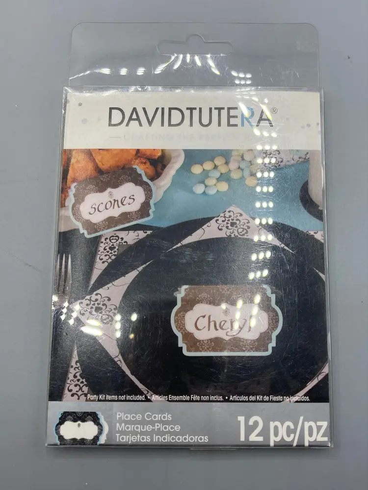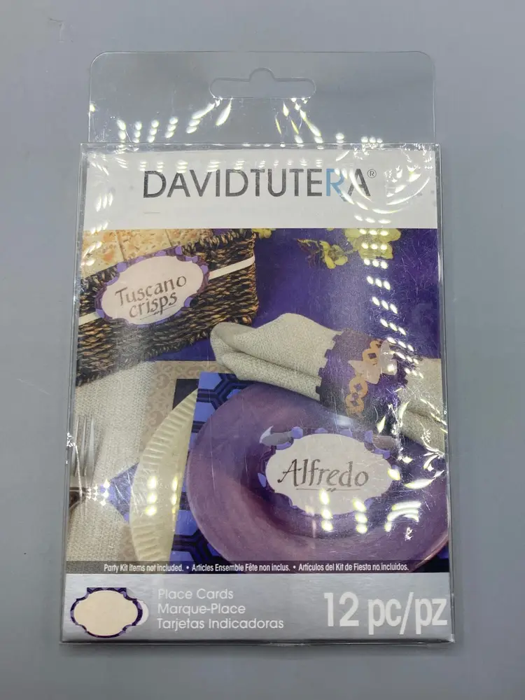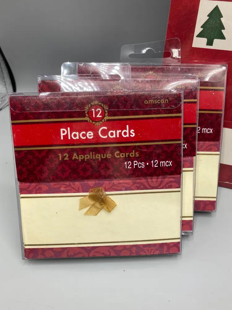 This lot includes the following: 3 packs of applique cards (12 cards per pack) 3 packs of heart place cards (12 cards per pack) 2 packs of David Tutera purple place cards (12 cards per pack) 1 pack of David Tutera teal place cards (12 cards per pack) 1 popsicle place card pack (8 in pack) 1 Brides place cards (40 in pack) 1 printable Christmas tree pack (48 count)