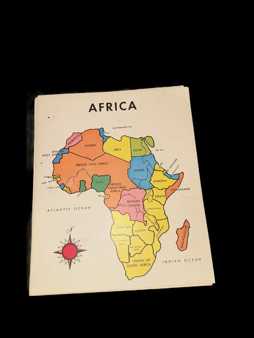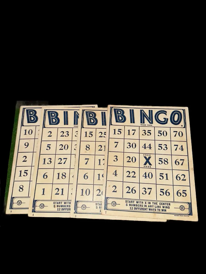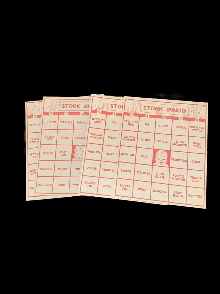 4 vintage Bingo cards, 4 vintage Stork Bingo cards, 5 double-sided continent flash cards, forts coloring book. All in great condition. Coloring book is unused.