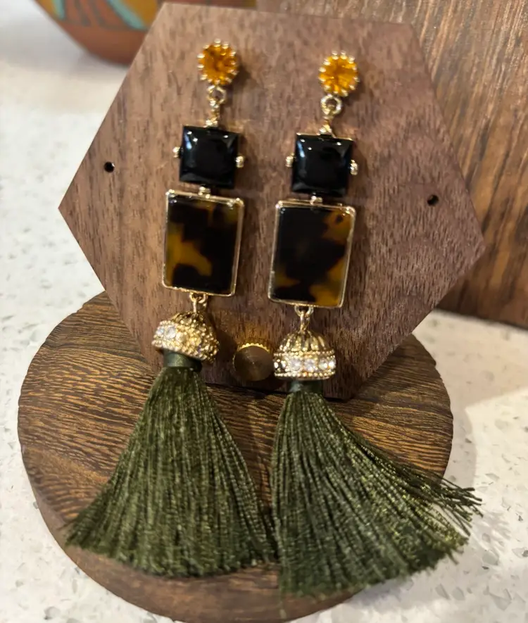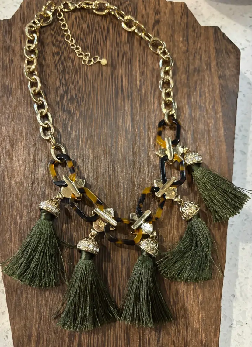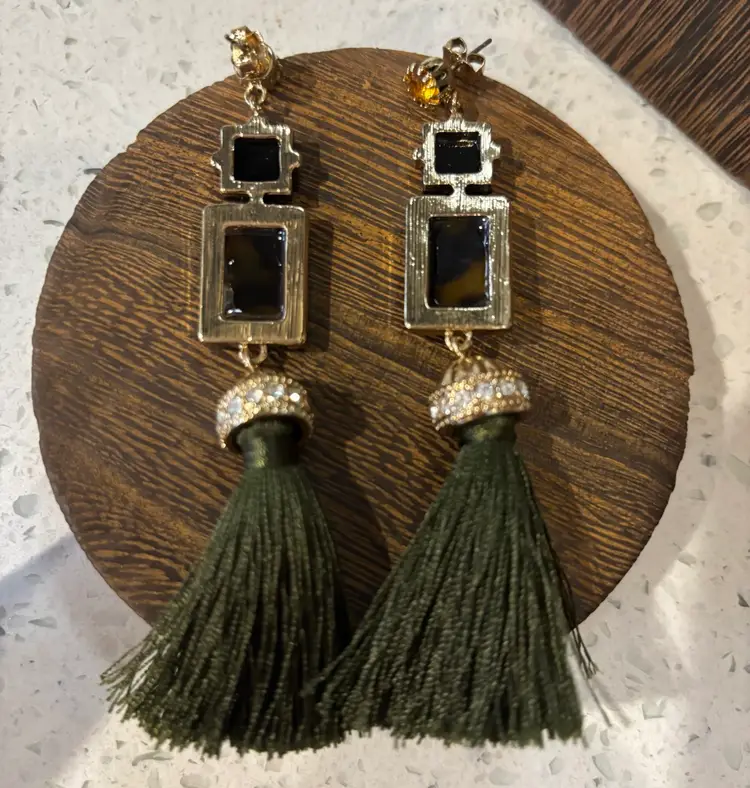 Necklace is 16” with 2 1/2” extension and earrings are 3 1/2” long. Like new set