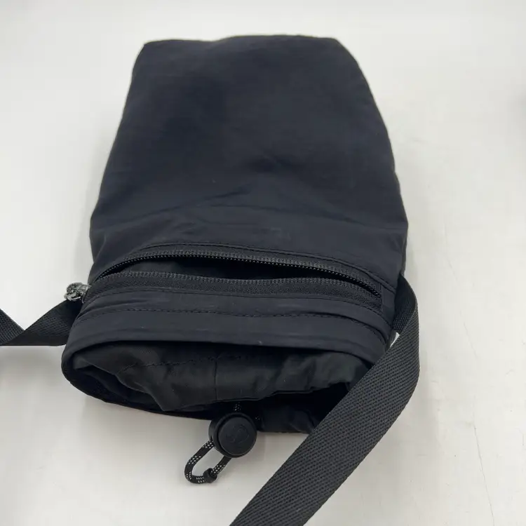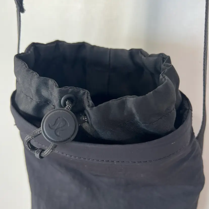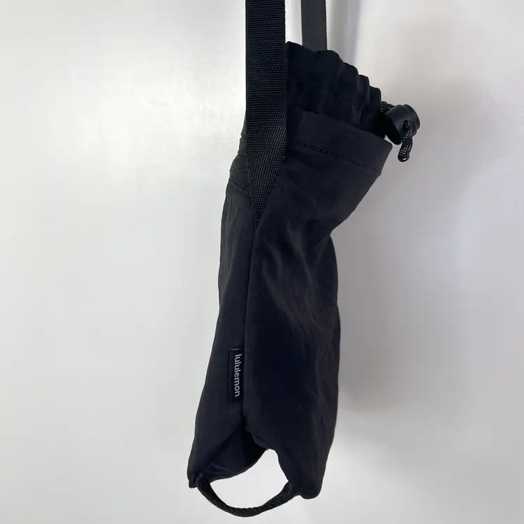 Lululemon Waterbottle Crossbody Bag Black LU9ALPS Dimensions: 11.5cm x 23.5cm (4.5" x 9.3") Volume: 2.5L Preowned item in excellent overall condition. No odors, stains, or holes. When hydration is the goal, this bag makes sure it's the priority. Keep your water bottle secure and easy to access using the cinch closure.