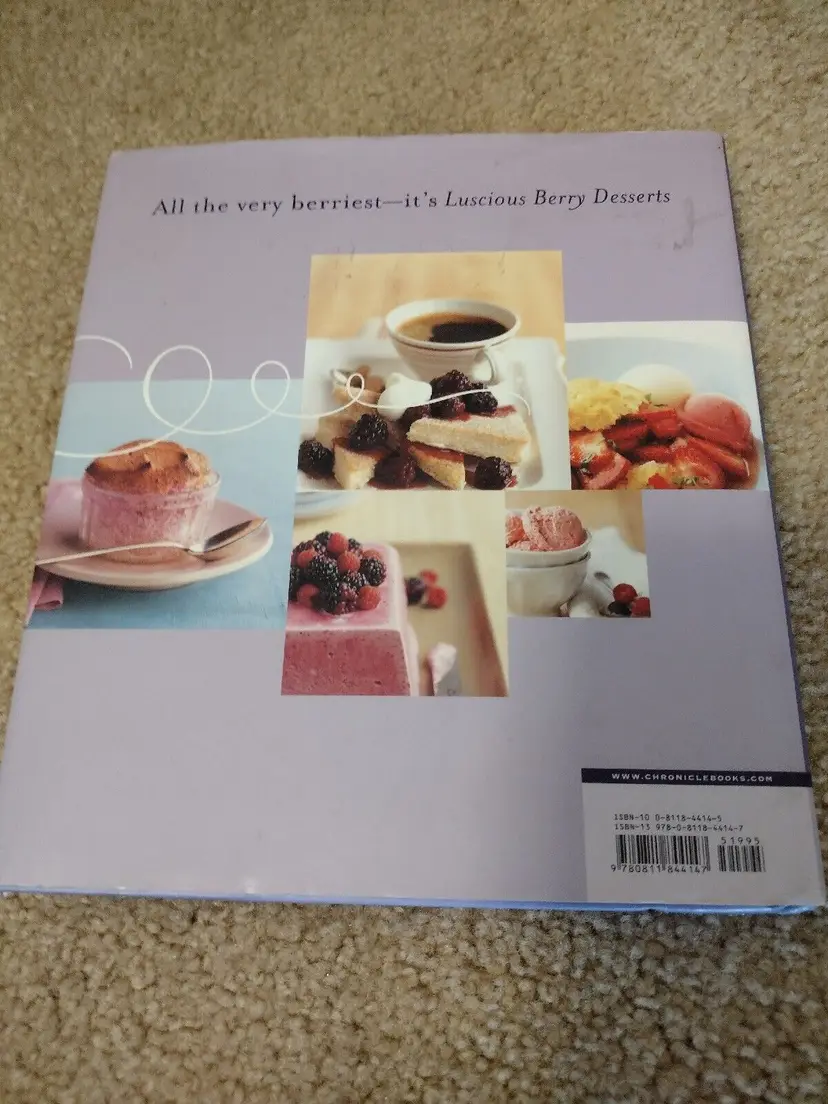 – Pages: 168 – Publication Date: 2006-05-25 – Book Title: Luscious Berry Desserts – Item Length: 8.3in. – Item Height: 0.9in. – Item Width: 7.4in. – Author: Lori Longbotham – Format: Hardcover – Language: English – Topic: Specific Ingredients / Fruit, Courses & Dishes / Desserts – Publisher: Chronicle Books – Publication Year: 2006 – Genre: Cooking – Item Weight: 23.6 Oz – Number of Pages: 168 Pages