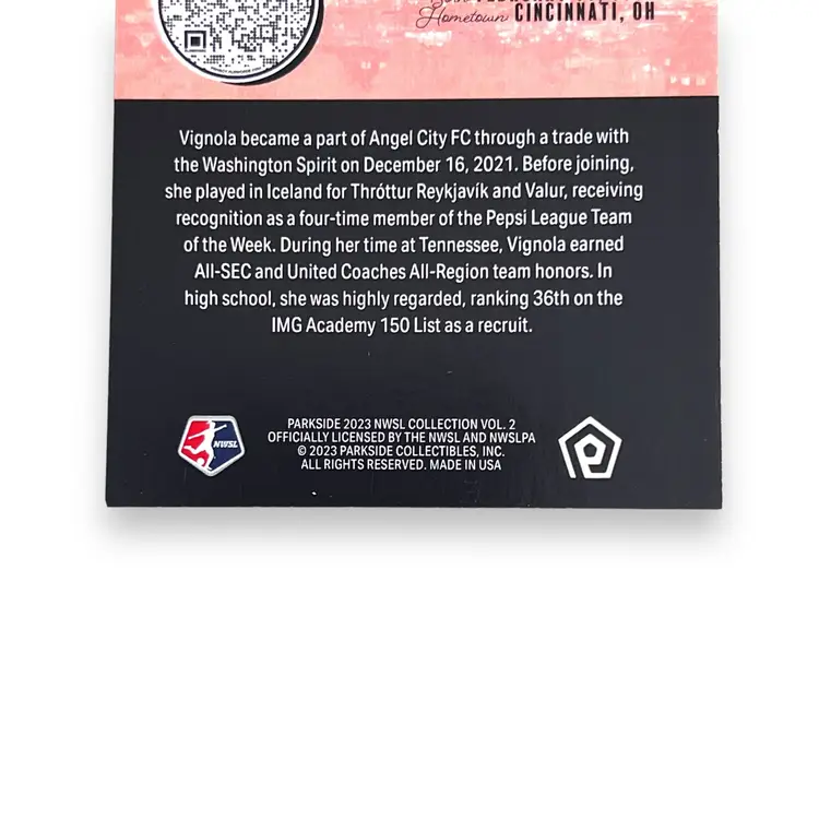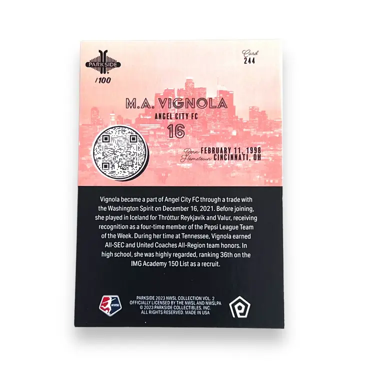 Here We Have a M.A. Vignola /100 2023 Parkside NWSL Volume 2 SHIMMER FOIL #224 ANGEL CITY