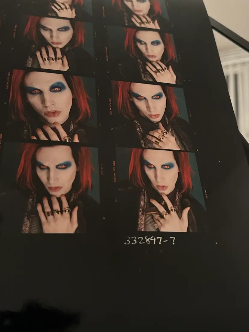 1998 RA-4 Color Contact Sheet (Proof Print) of Marilyn Manson, twelve 6×6 frames from Kodak Vericolor III (VPS 6006) 120 negatives, printed on Kodak Professional paper, with agency archive numbering.