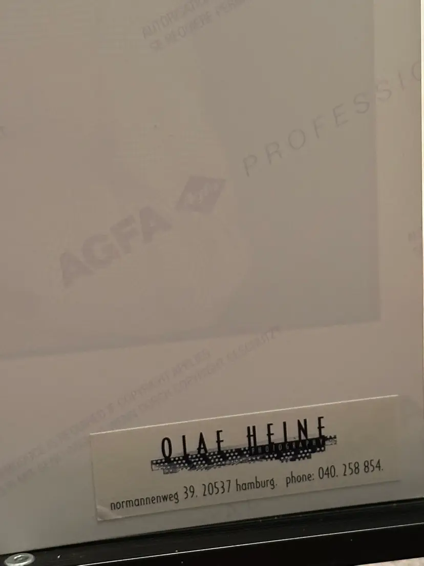 • Reverse: Crisp with AGFA Professional paper watermarking and Olaf Heine’s Hamburg studio sticker, ensuring provenance.