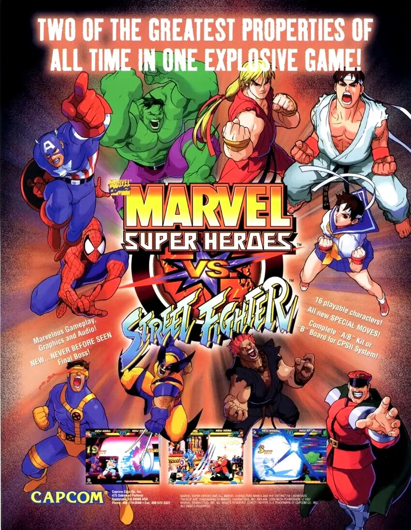 Brand: Capcom Year: 1998 Game Title: Marvel Super Heroes VS Street Fighter Theme: Superheros Original/Reproduction: Original Country/Region of Manufacture: United States Modified Item: No Arcade: Flyer