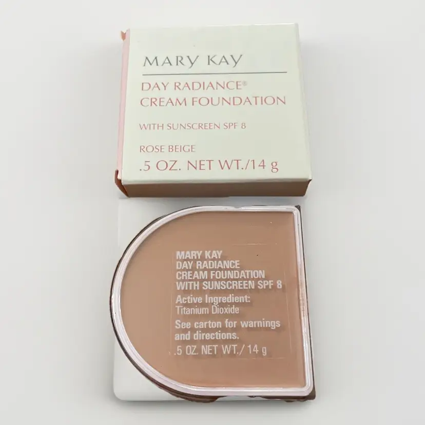 Day Radiance Cream Foundation in Rose Beige, # 1501 by Mary Kay. Full size, D-shaped, .5 fl oz., foundation. Sunscreen protection, SPF 8. For dry skin. Unused.
