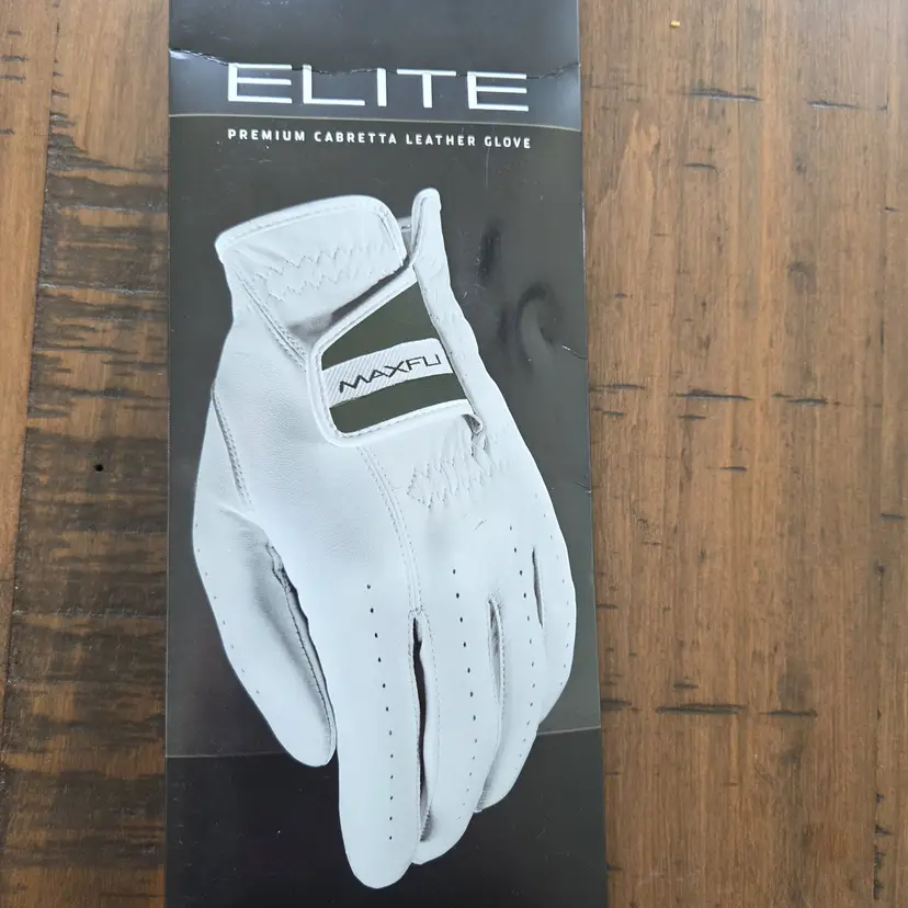 This listing is for a brand new Maxfli Elite Golf Glove. Made of super soft fine Cabretta leather. Size is mens medium for right handed golfer (goes on left hand!). This glove is a bargain for the quality that it is!