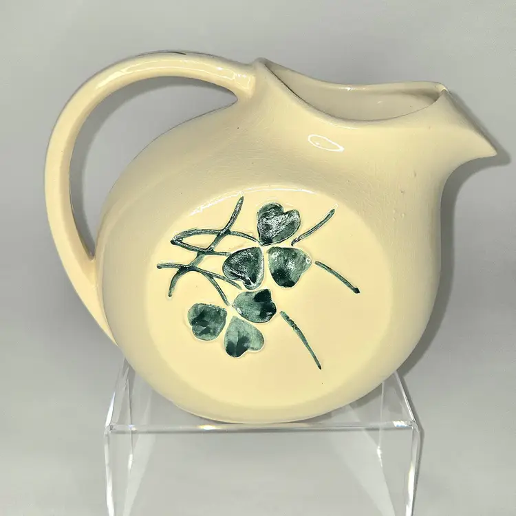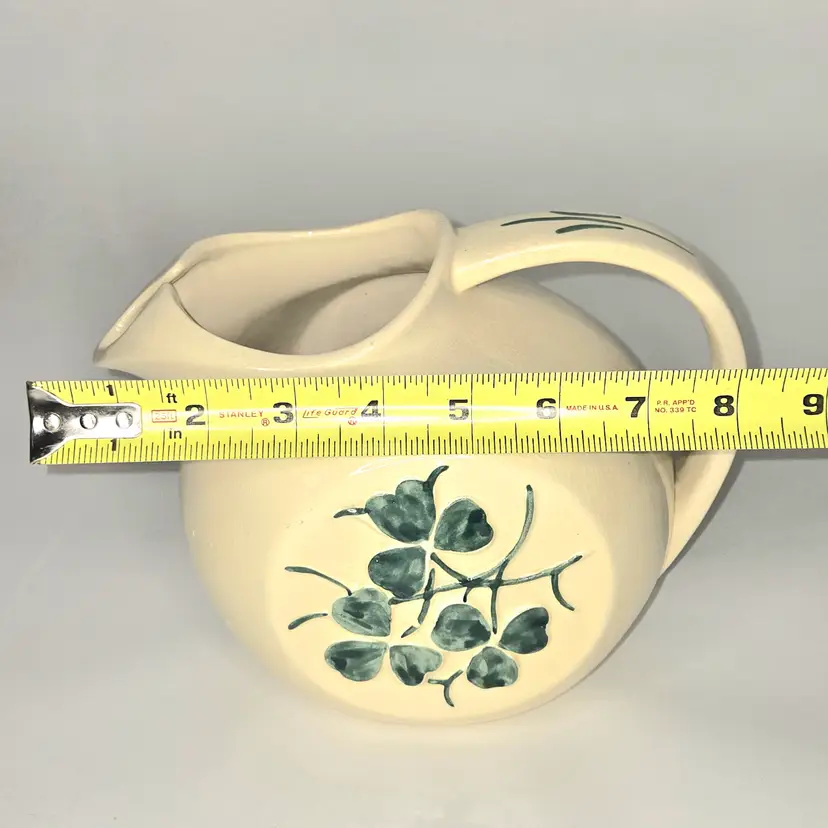 This marked, vintage piece of McCoy is perfect for collectors of vintage McCoy. Large with beautifully hand painted shamrocks and applied handle. Some glaze pock marks due to age but no chips or cracks.