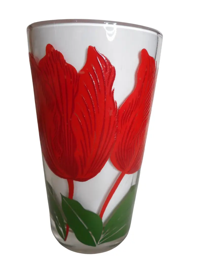MCM Boscul Peanut Butter Drinking Juice Glass Tumbler Tulips with Green leaves