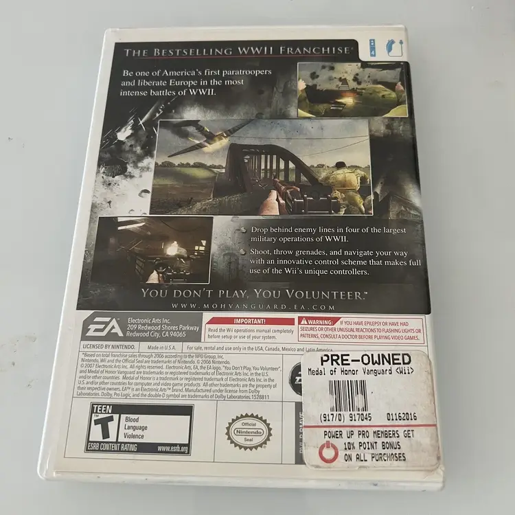 Region Code: NTSC-U/C (US/Canada) Release Year: 2007 MPN: N/A Features: Manual Included Publisher: Electronic Arts Rating: T-Teen Genre: Shooter Video Game Series: Medal of Honor Series Platform: Nintendo Wii Game Name: Medal of Honor: Vanguard