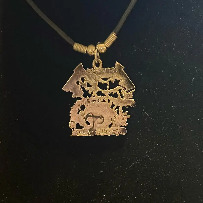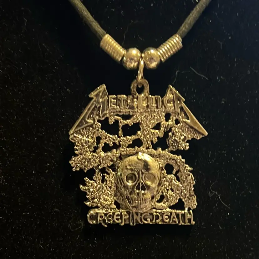 Metallica metal creeping death pendant on a black cord. 6 1/2 inch drop. Hook closure in the back. No signs of wear or damage.