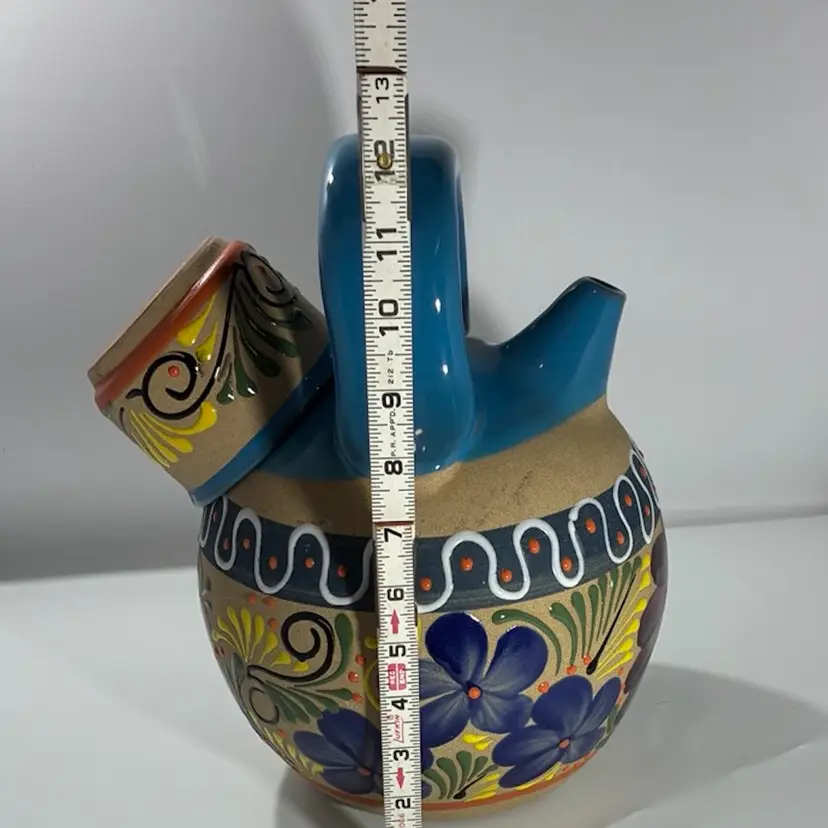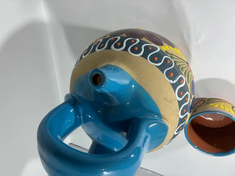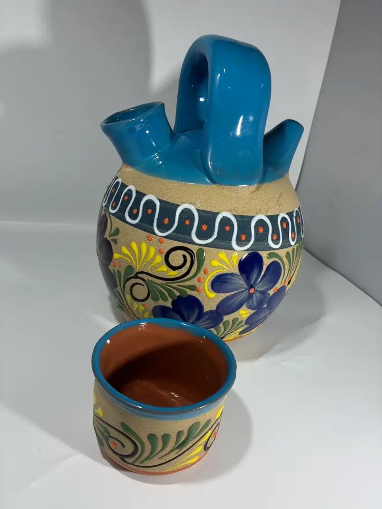 Mexican Clay Pottery Water Jug Decanter with Cup Garrafon De Barro Con Vaso