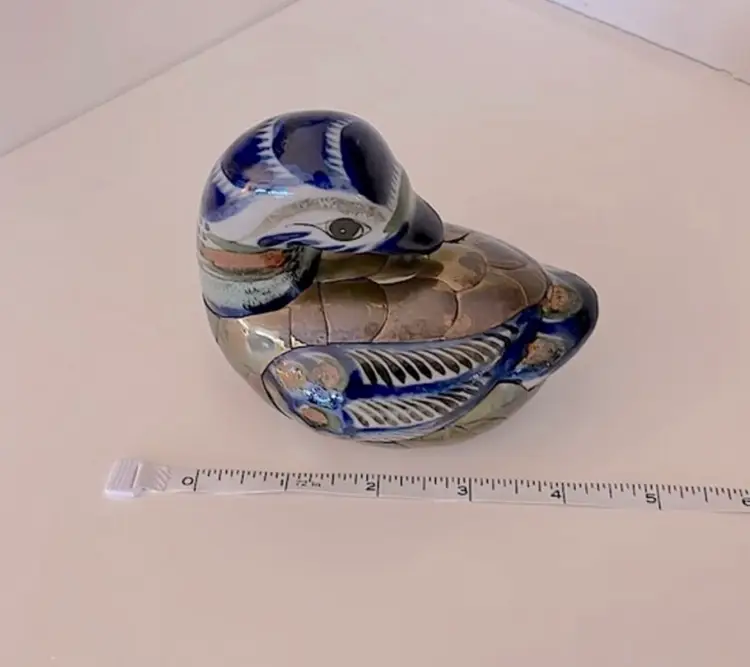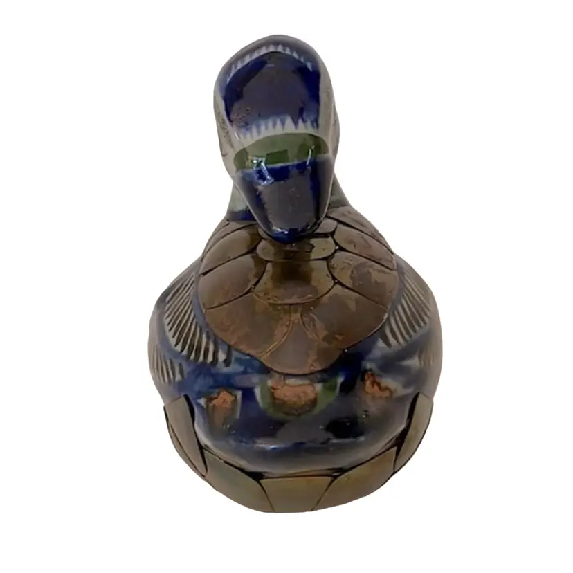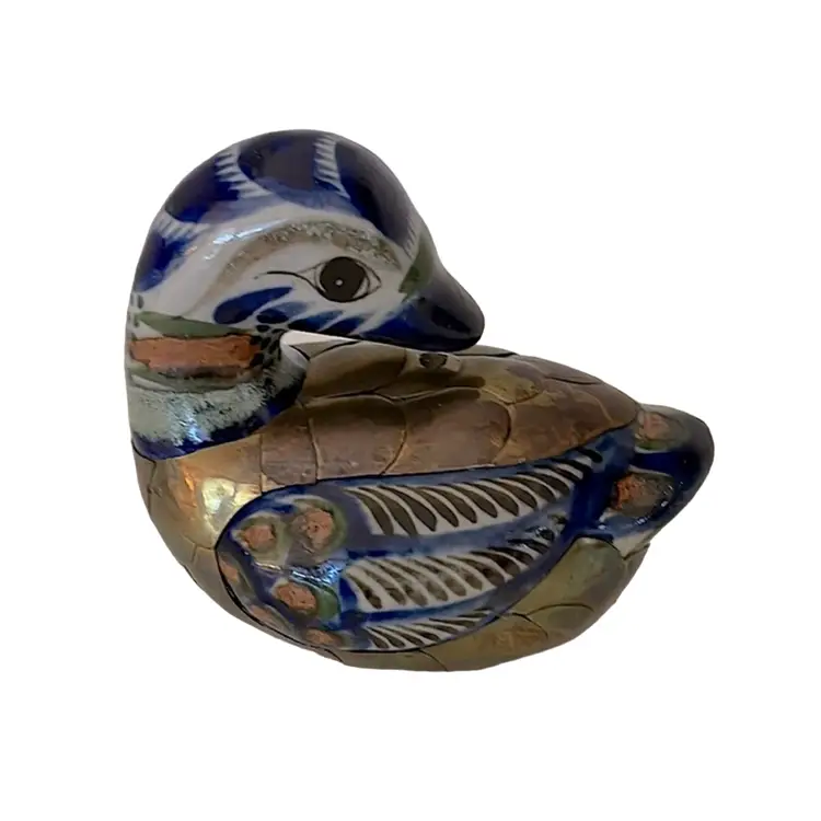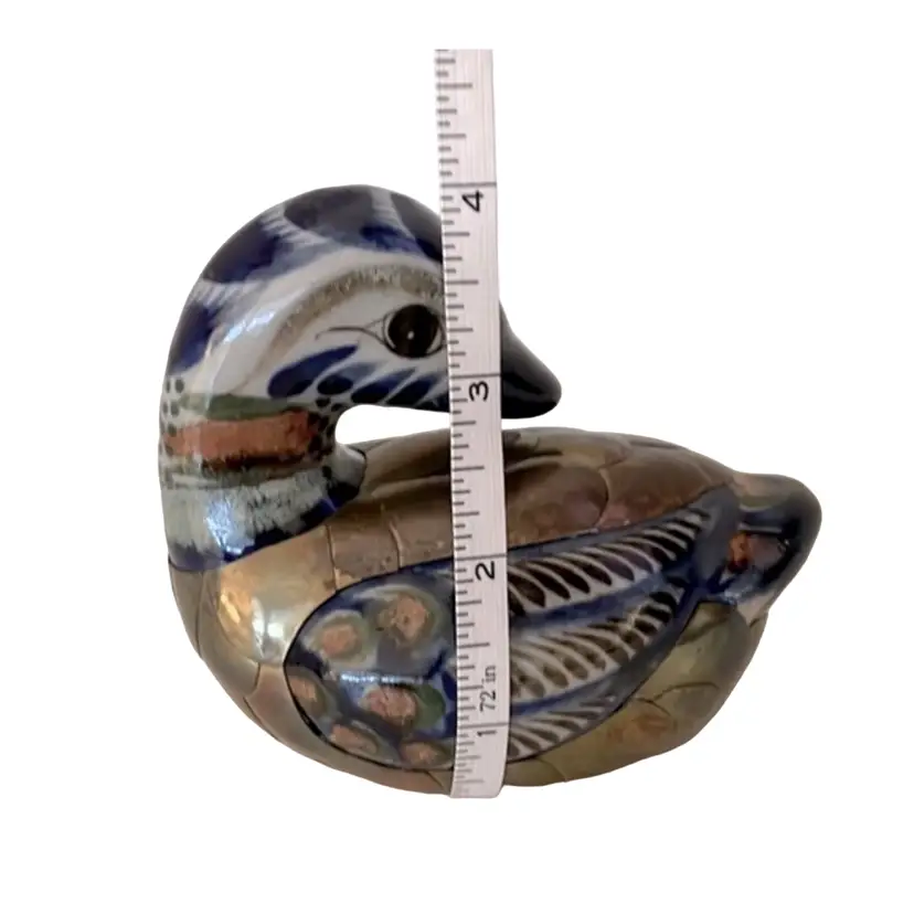 Mexican, Tonala, hand made, brass and ceramic DUCK. Really cute! Please see pictures for measurements.