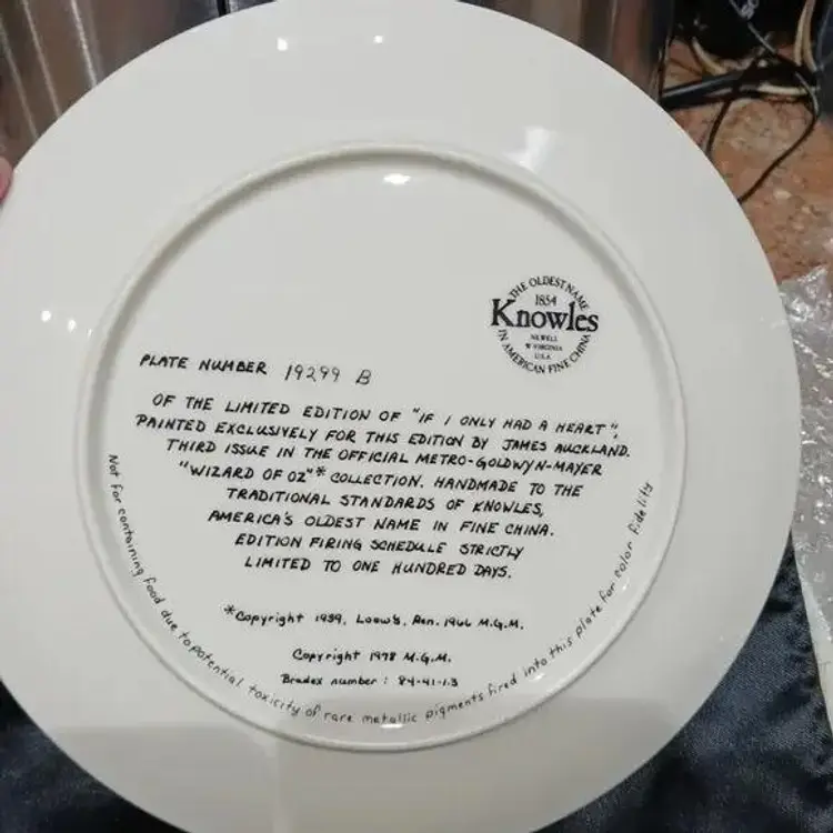 MGM Wizard of Oz, “If I Only Had A Heart” Collectors Plate ~3rd Ed. (Knowles) Pre-owned, Great condition. No Stand or Box. Plate# 19299B