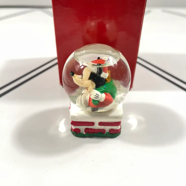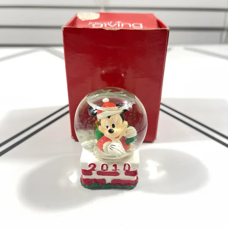 The product is a 2.5" tall by 2" wide Mickey Mouse snow globe from Disney's Joy of Giving collection released in 2010 as part of a Christmas promotion. This collectible item features the iconic character Mickey Mouse and is part of the Disney franchise, making it a unique and charming addition to any Disney-themed collection.