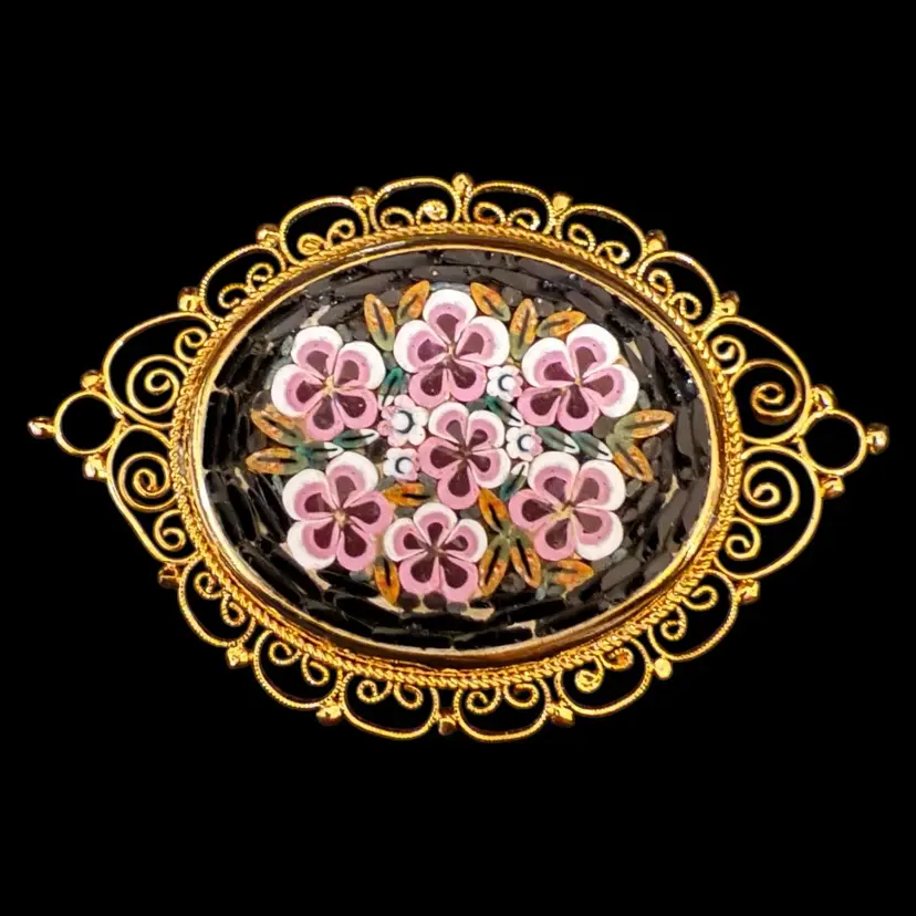 Featured in upcoming livestream: Micro Mosaics, Bakelite, Thermoset, Rhinestones, Damascene, Bugs, Enamel Flowers! on November 9 at 10:00pm