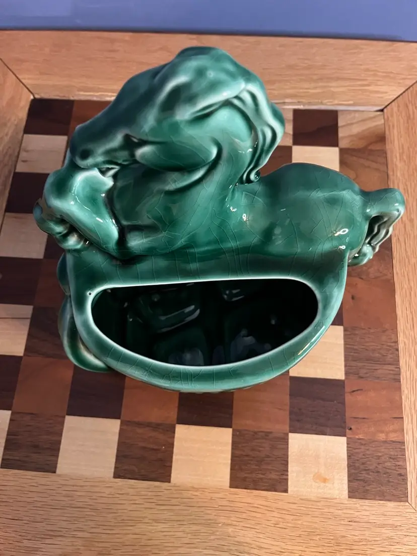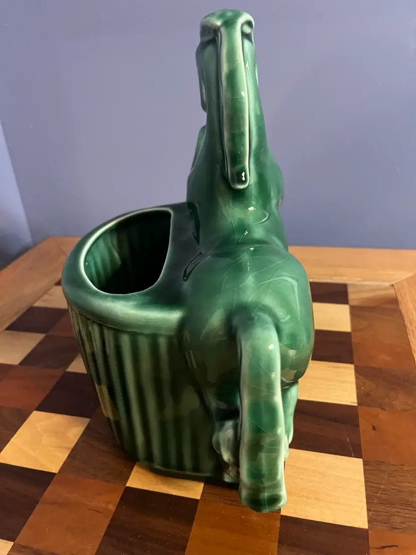 Ceramic planters, especially those featuring animal motifs, were a common item during the mid-century. They served a dual purpose as decorative objects and functional holders for houseplants, which were also very fashionable. The jade green glaze seen on this horse planter is a classic color associated with this era, often found on pieces from various American and European potteries.