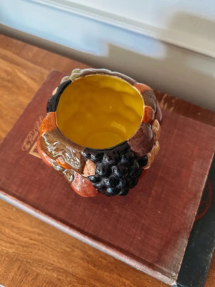 Gorgeous bold colors and with yellow interior. Makes a beautiful tissue holder, flower vase, or planter!