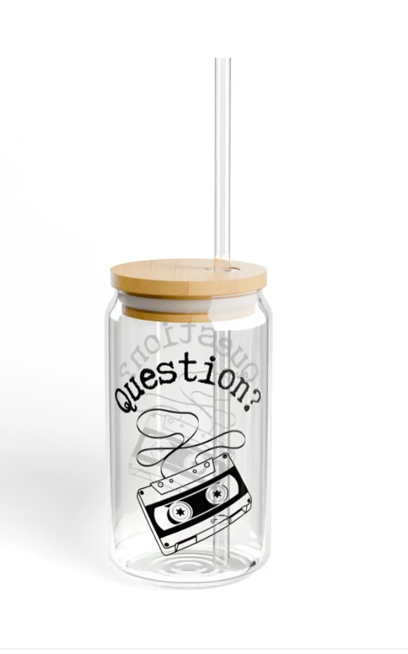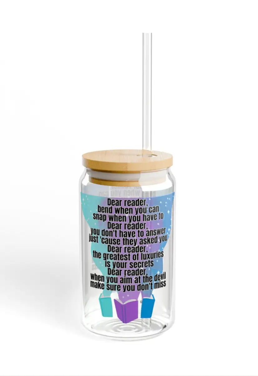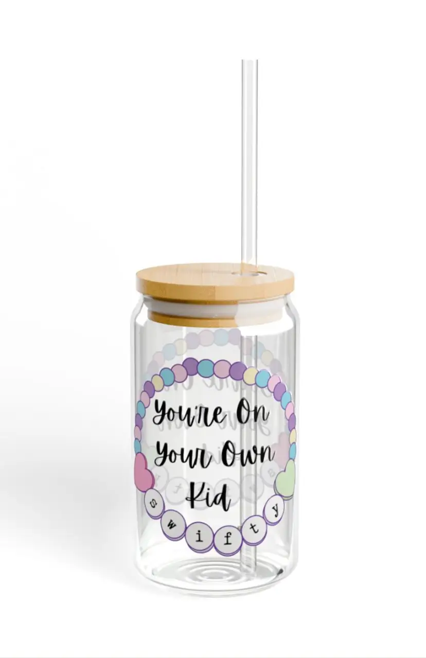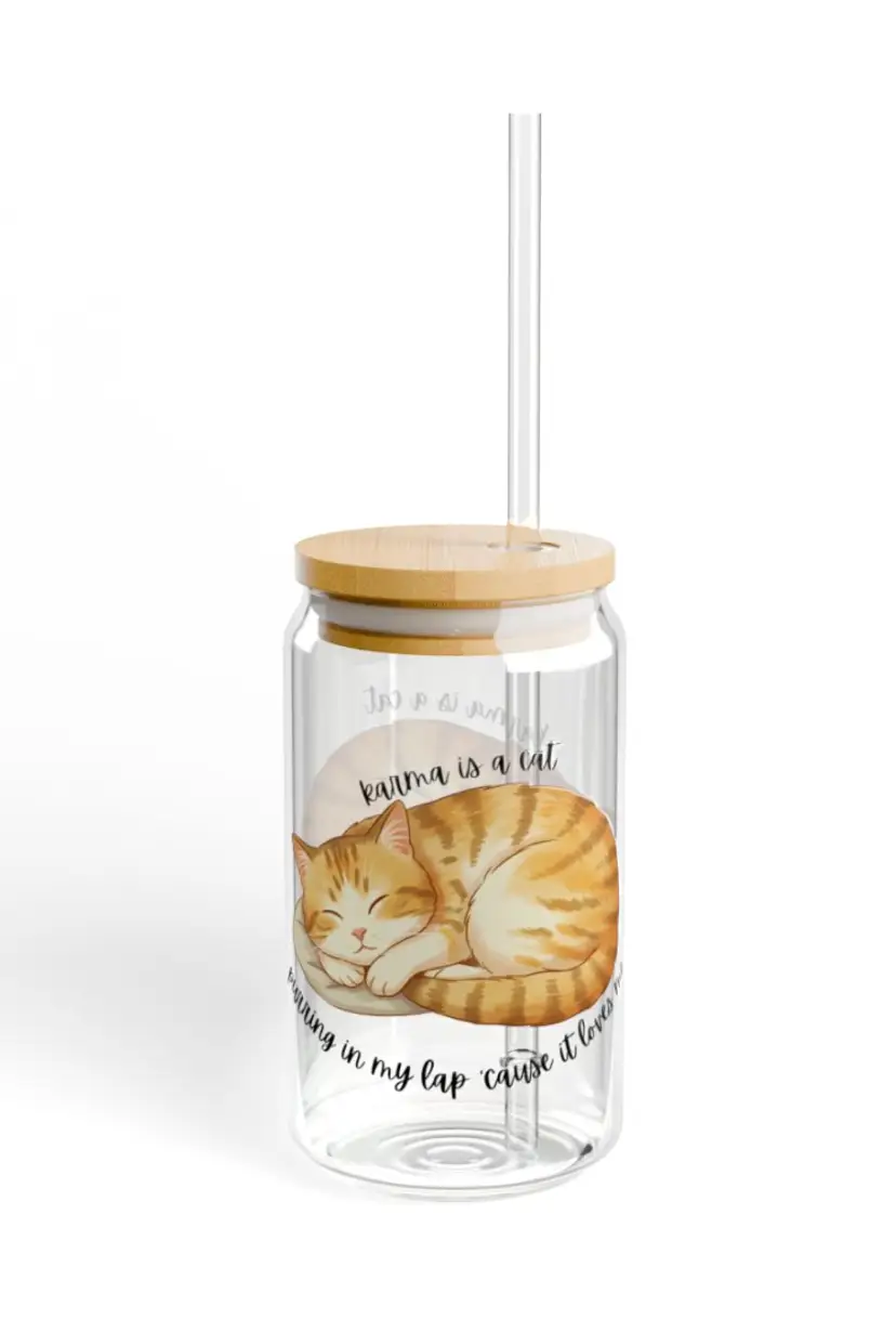 .: One size: 16oz (0.473 l) .: Clear tempered glass construction .: Made in the USA from globally sourced material .: Comes with gasket-push bamboo lid and Tritan plastic straw .: BPA Free .: Please note: Hand wash only .: Print is on the front & back .: Find these and more at https://kate-kreates.printify.me/category/all/1