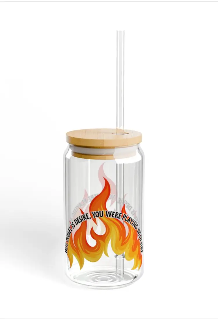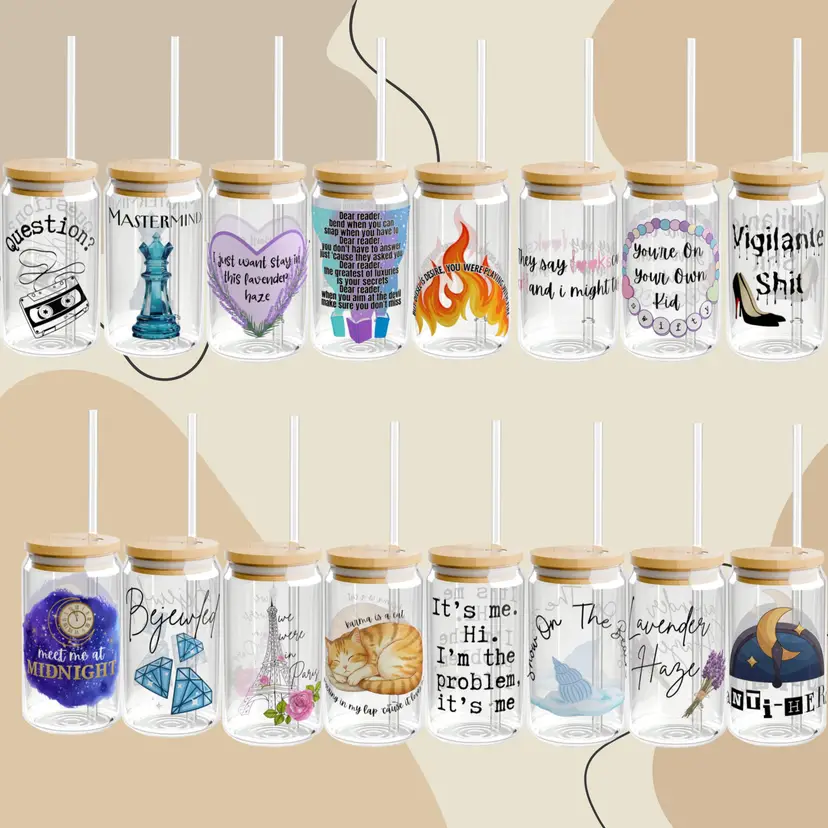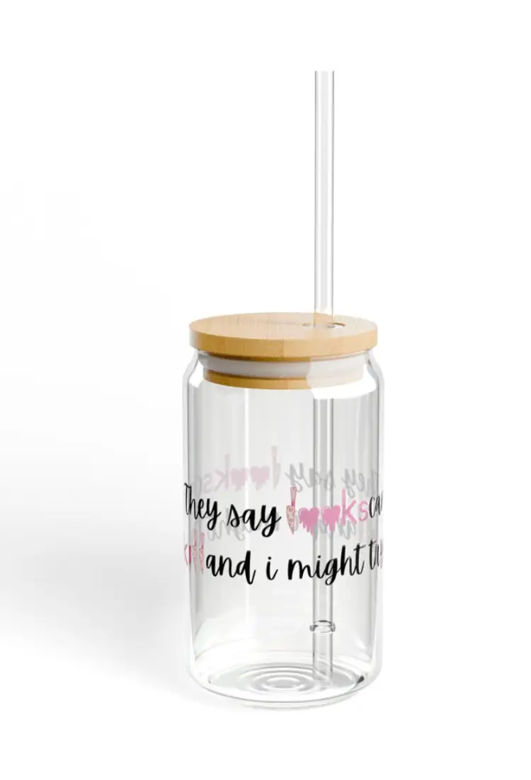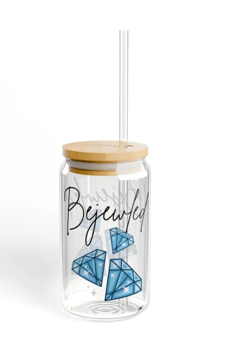 .: One size: 16oz (0.473 l) .: Clear tempered glass construction .: Made in the USA from globally sourced material .: Comes with gasket-push bamboo lid and Tritan plastic straw .: BPA Free .: Please note: Hand wash only .: Print is on the front & back .: Find these and more at https://kate-kreates.printify.me/category/all/1