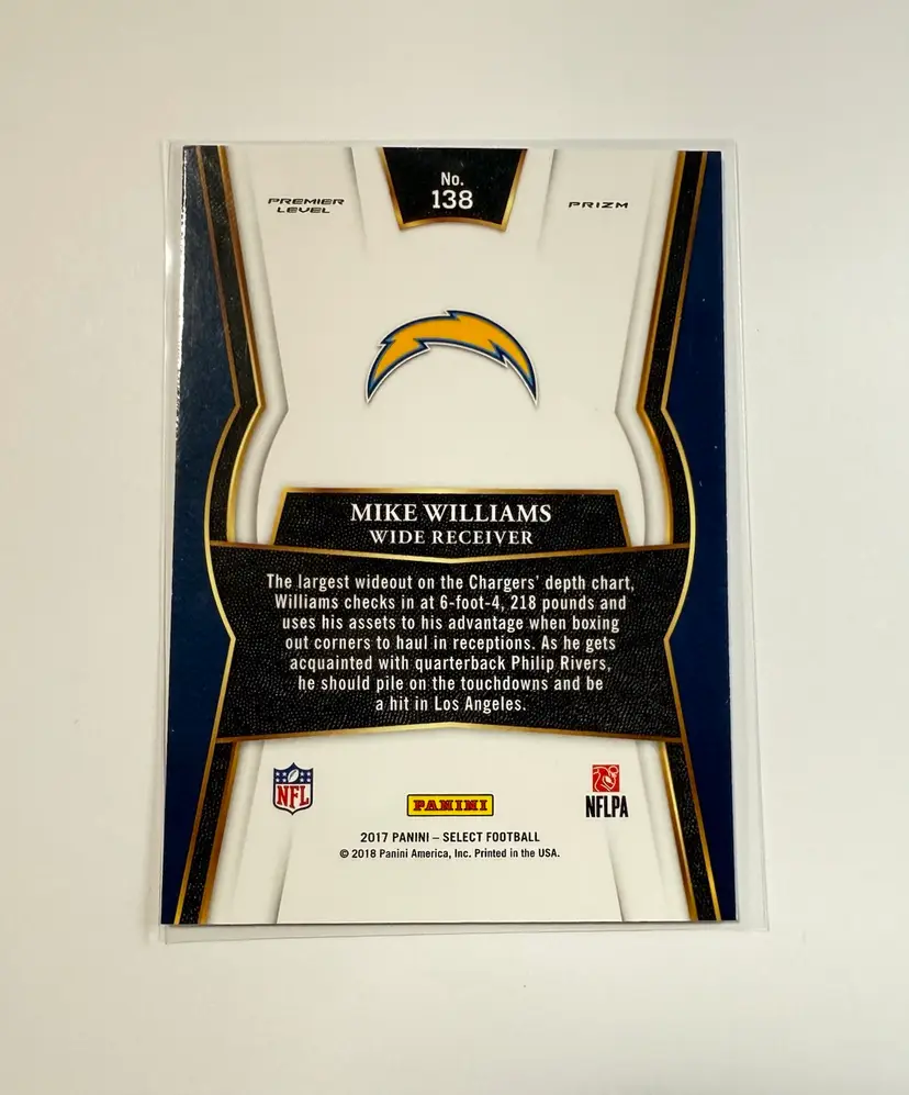 Mike Williams 2017 Panini Select Football Premier Level Silver Prizm #138 RC Chargers