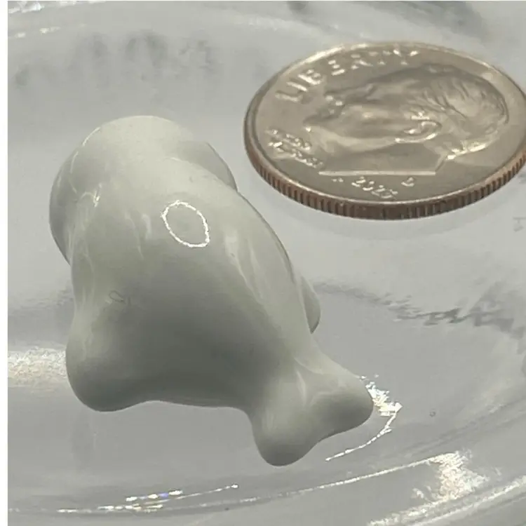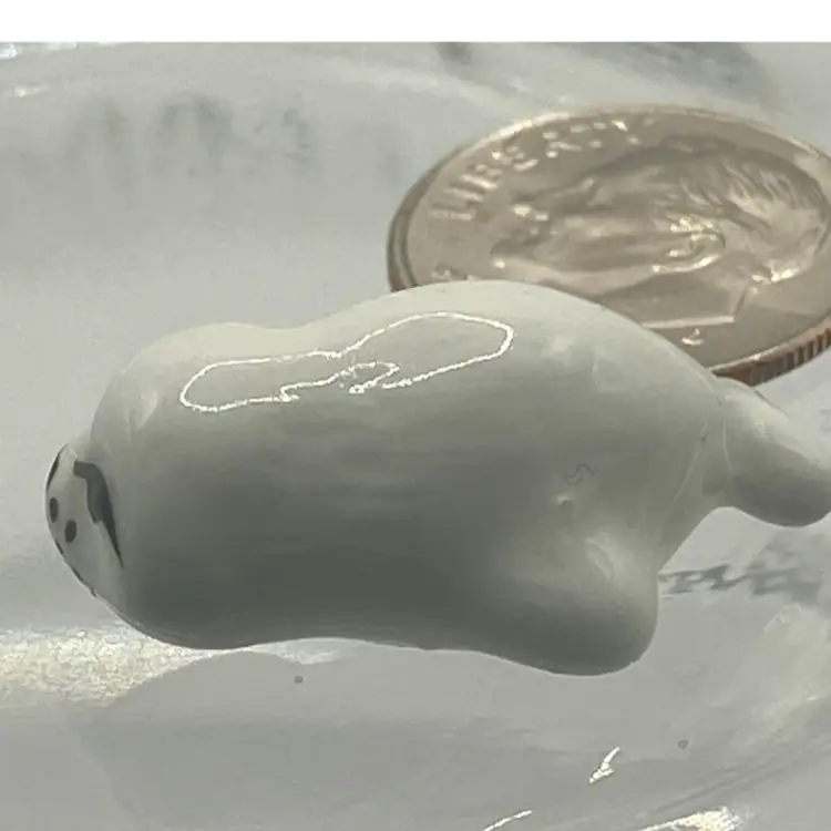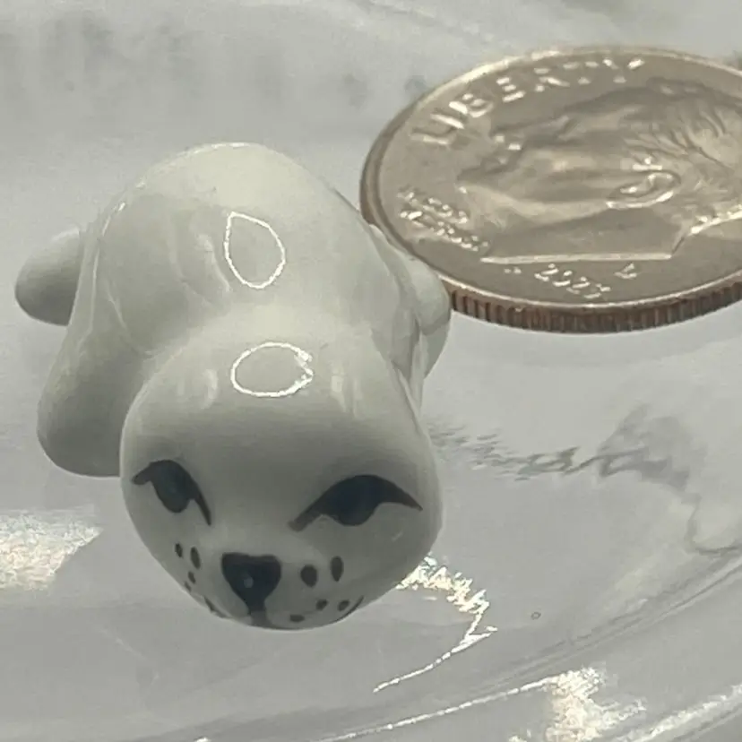 This itty bitty baby seal is precious. Made by Bug House, it has no chips or cracks. It is pictured with a dime for size only.