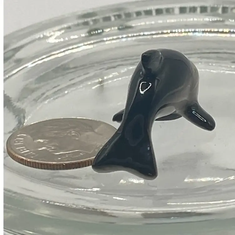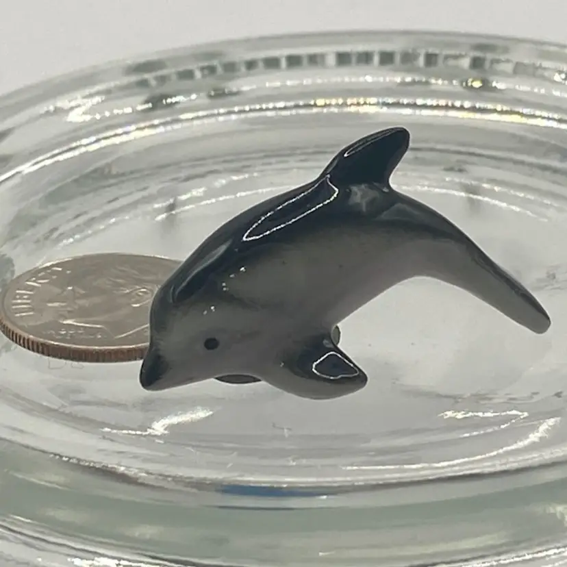 This very small dolphin is in very good condition with no chips or breaks. It is pictured with a dime for size only.