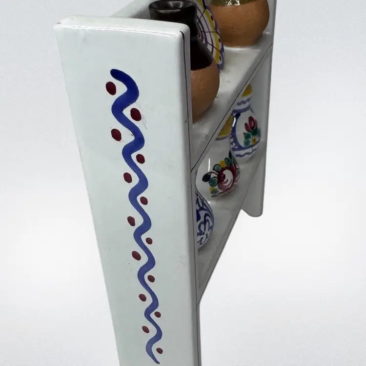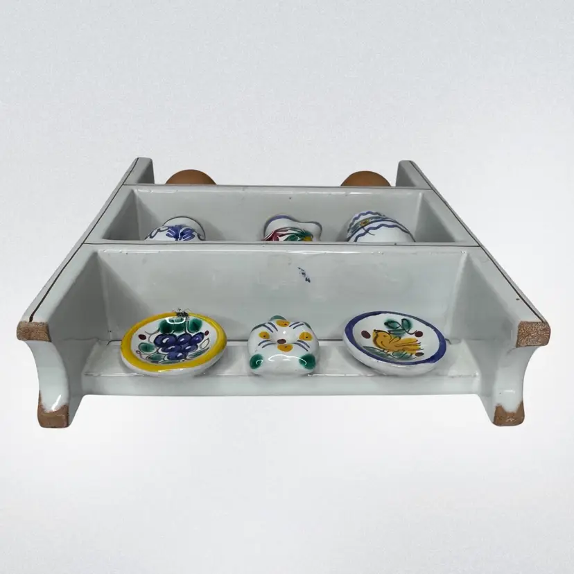 This is such a cute piece and hand painted/hand crafted and signed on the back by the maker. It is in great condition and measures 5 1/2" x 5" x 1 1/4" and has holes in the back if you would like to hang it or it sits up nicely for display. No chips or cracks.