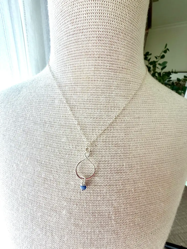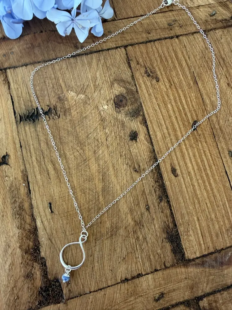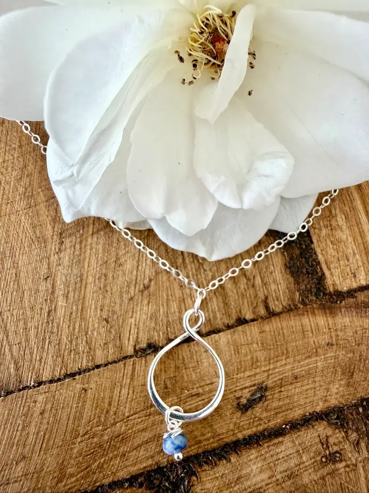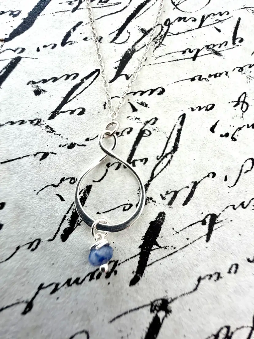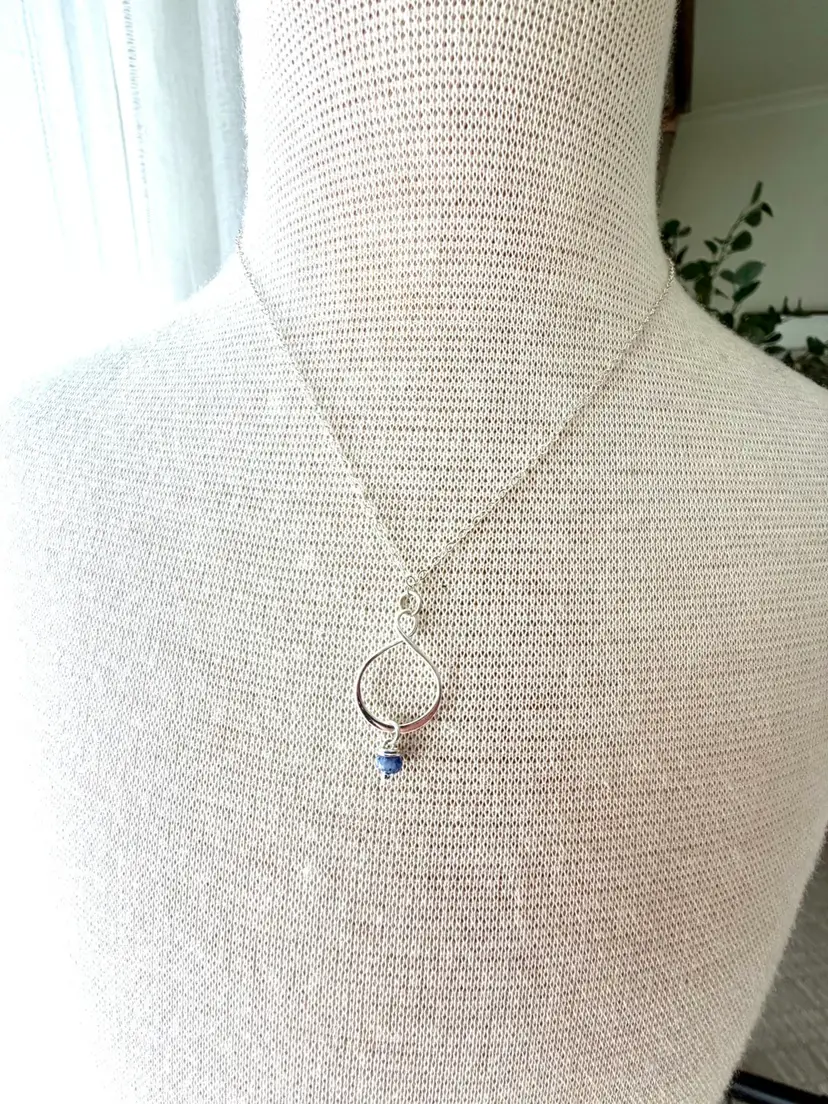 Minimalist Flat Cable SS Chainn 16” Twisted SS Pendant 1” Hand wrapped Sodalite Bead