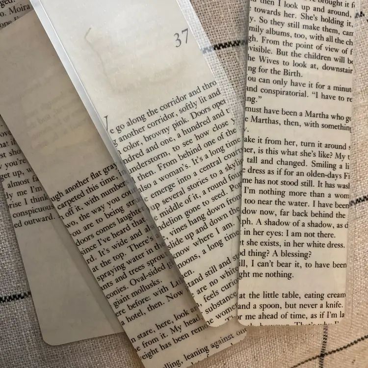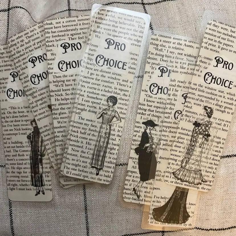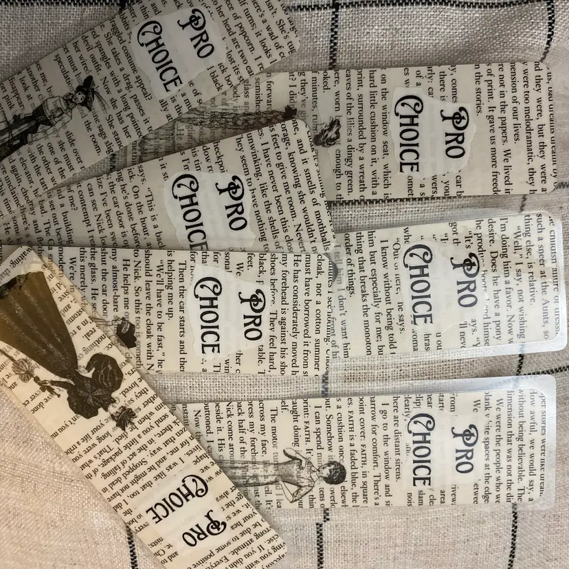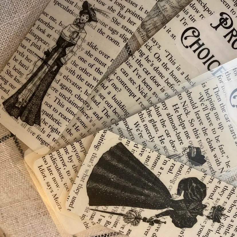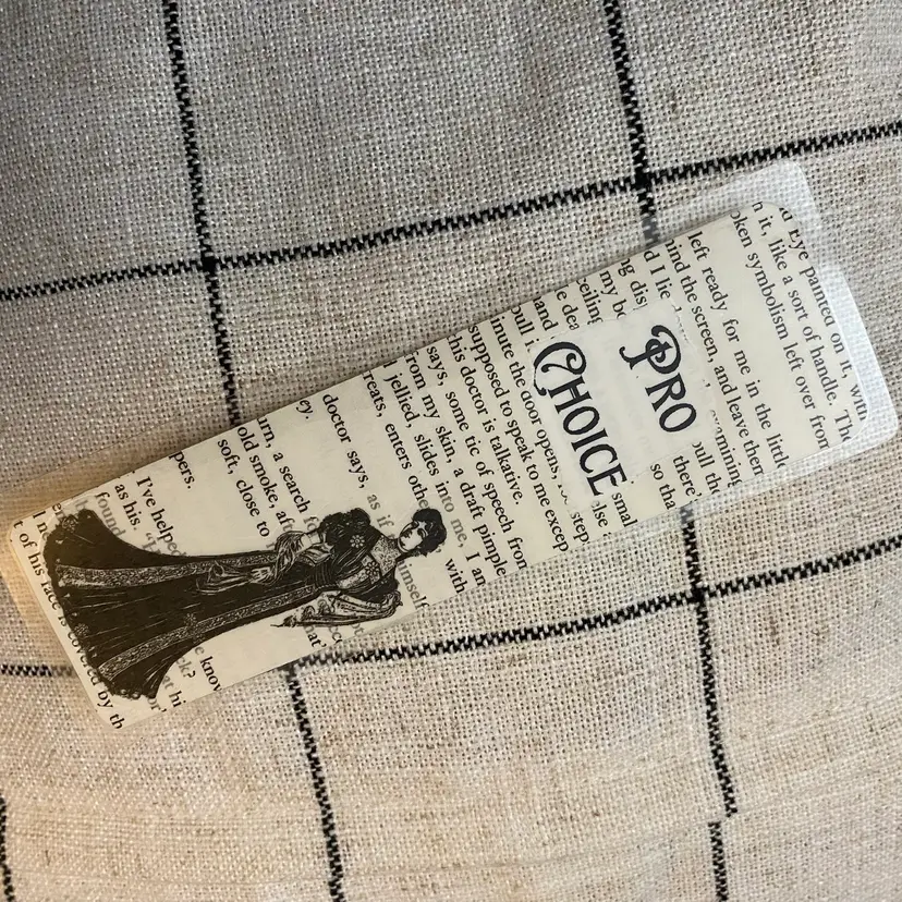 Making a statement with Victorian flare. Handmade from pages of The Handmaid’s Tale and laminated with 5MIL. Double sided pattern of book page. No tassels. Randomly chosen by seller.