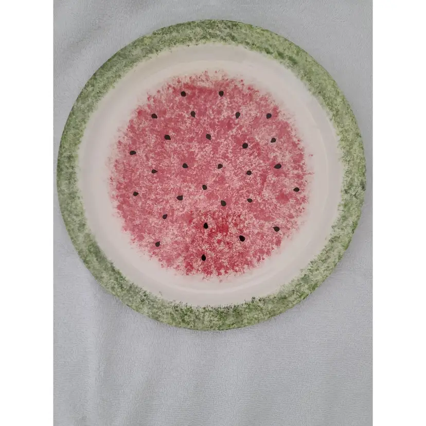 This 4 piece place setting has Cool Country vibe. Each piece has a design different yet complimentary to the next. The dinner plate is hand crafted pained as a whimsical watermelon. The Threshold “Studio Red” salad plate has a fiesta vibe. The Todays Home bowl is black and white stipe complimentary to the color scheme. The green beverage glass is a classic semi-pedestal.