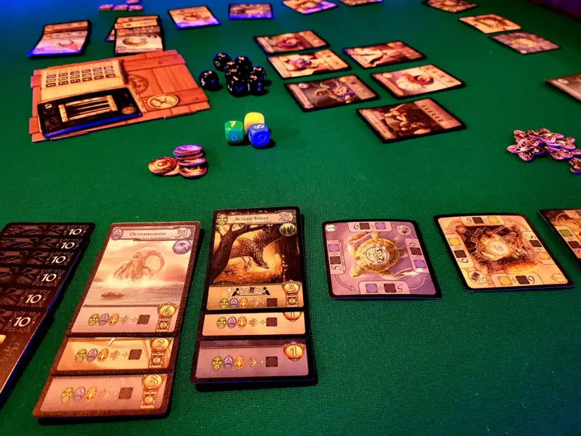 As the newest members of the Royal Monstrological Society, players embark on an expedition to hunt for legendary monsters, which have been spotted in the cloudlands, in the deep sea, and in the haunted forest. With ideal dice combinations, players can improve their camps, catch new monsters, and use the abilities of previously captured monsters.