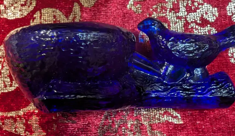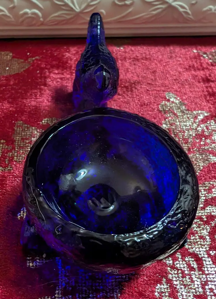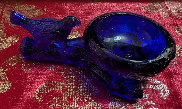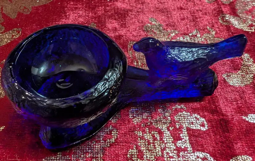 Mosser Mini Cobalt Blue Bird Salt Cellar. Piece is in amazing condition and has a unique design. Pieces approximately 3.5 in length and 2 in width. Very unique looking piece.