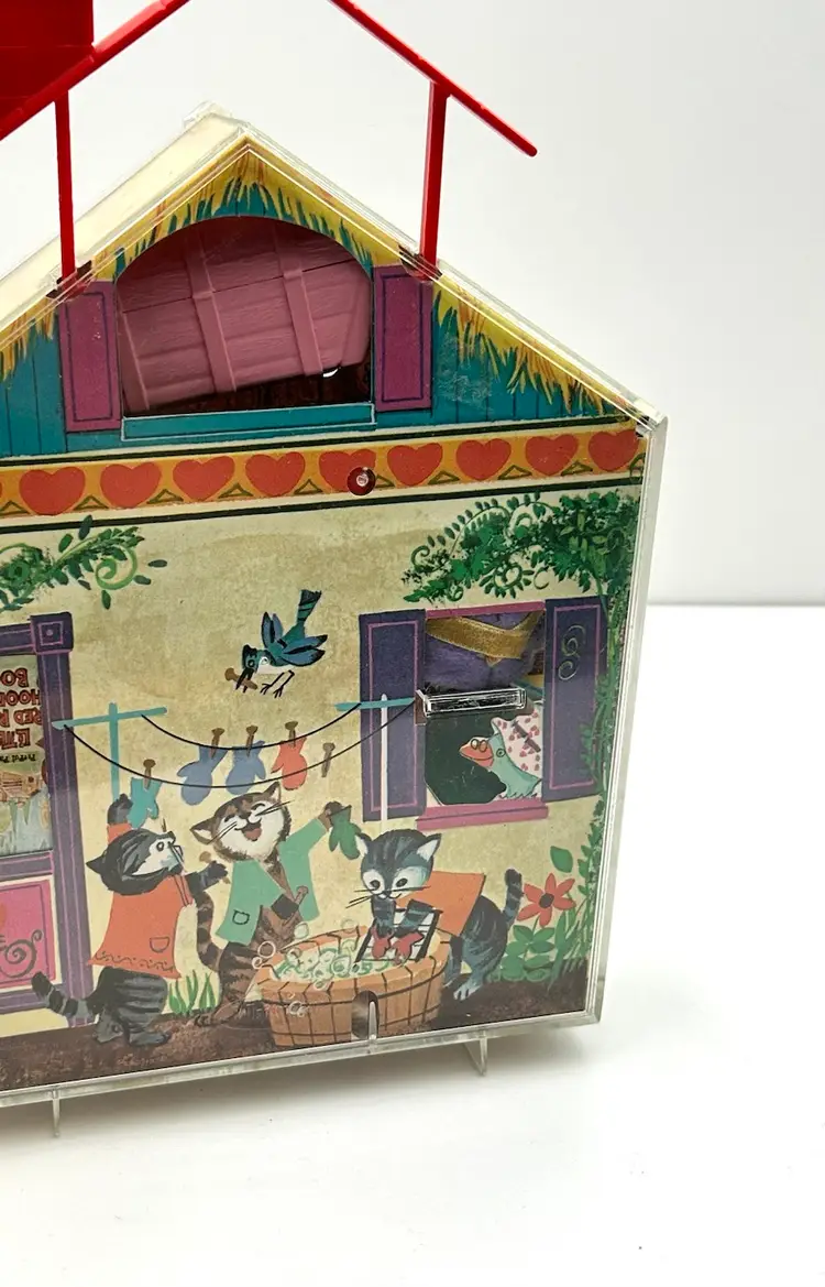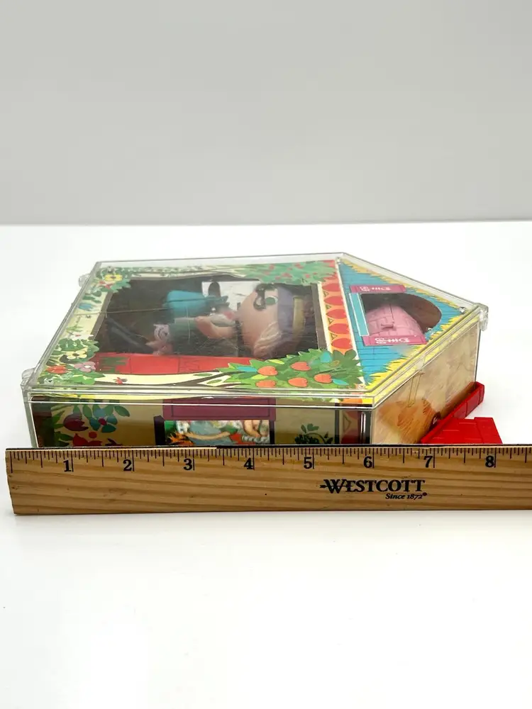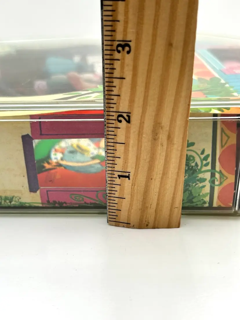 As shown House box size is 8 inches tall by 6 inches wide and 2 inches tall The box does have cracks and the book does have some wear