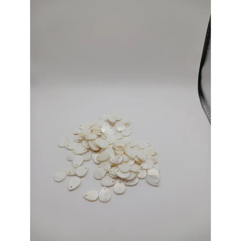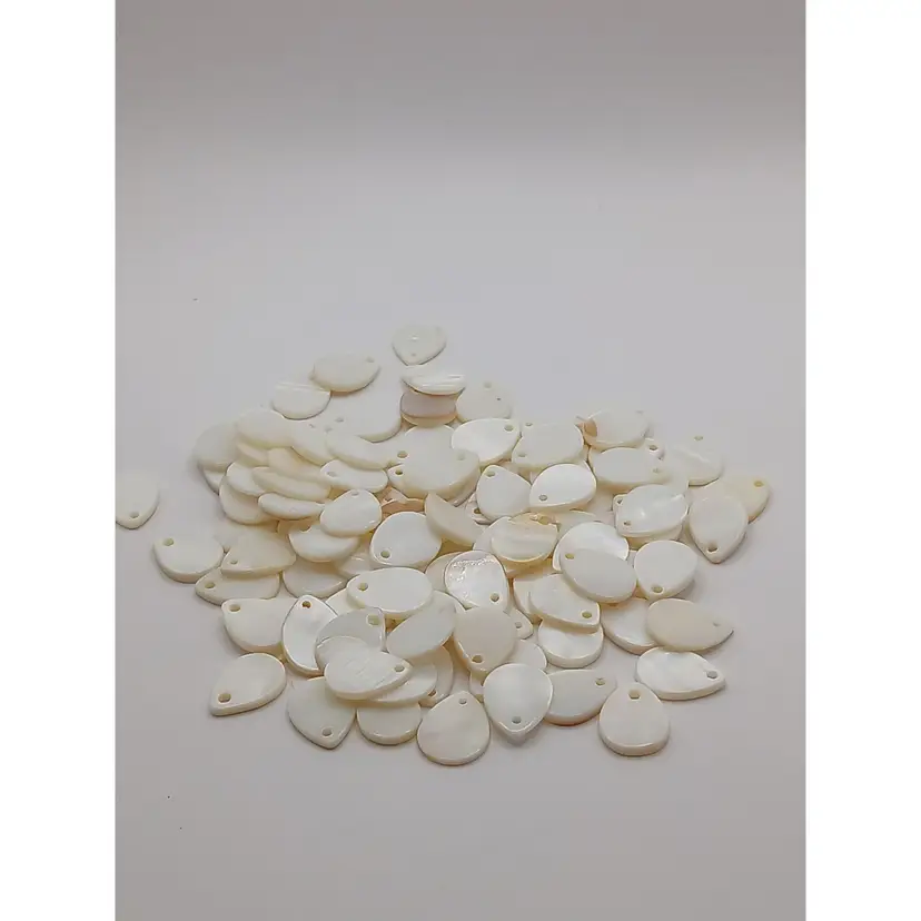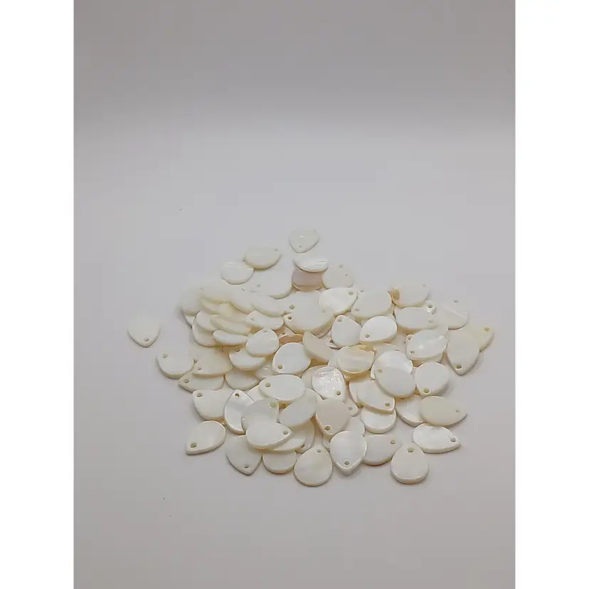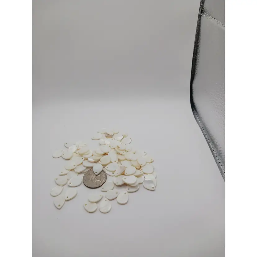Qty 98 (MoPdrops01) 10x14x2mm Mother of Pearl Drop Shaped Beads/Pendants. Hole drilled at top section to make this into a pendant or Charm.
