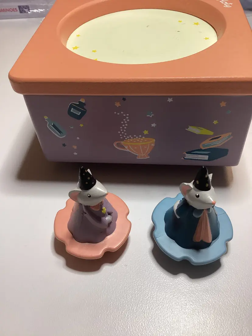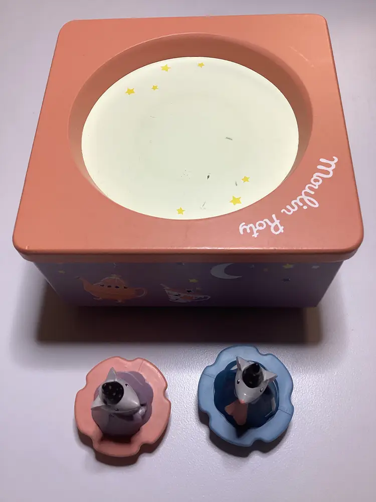 The Moulin Roty Wind Up Music Box is a charming and nostalgic decorative collectible made in France. With its colorful design and intricate craftsmanship, this music box is sure to delight collectors and music enthusiasts alike. The brand's reputation for quality and durability, combined with the unique charm of its French manufacture, makes this a special addition to any collection of music boxes or decorative items.