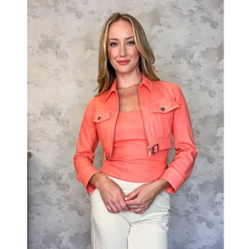 Gorgeous top and cropped jacket set in jean material with some stretch. Size zip closure on top with button closure on jacket.