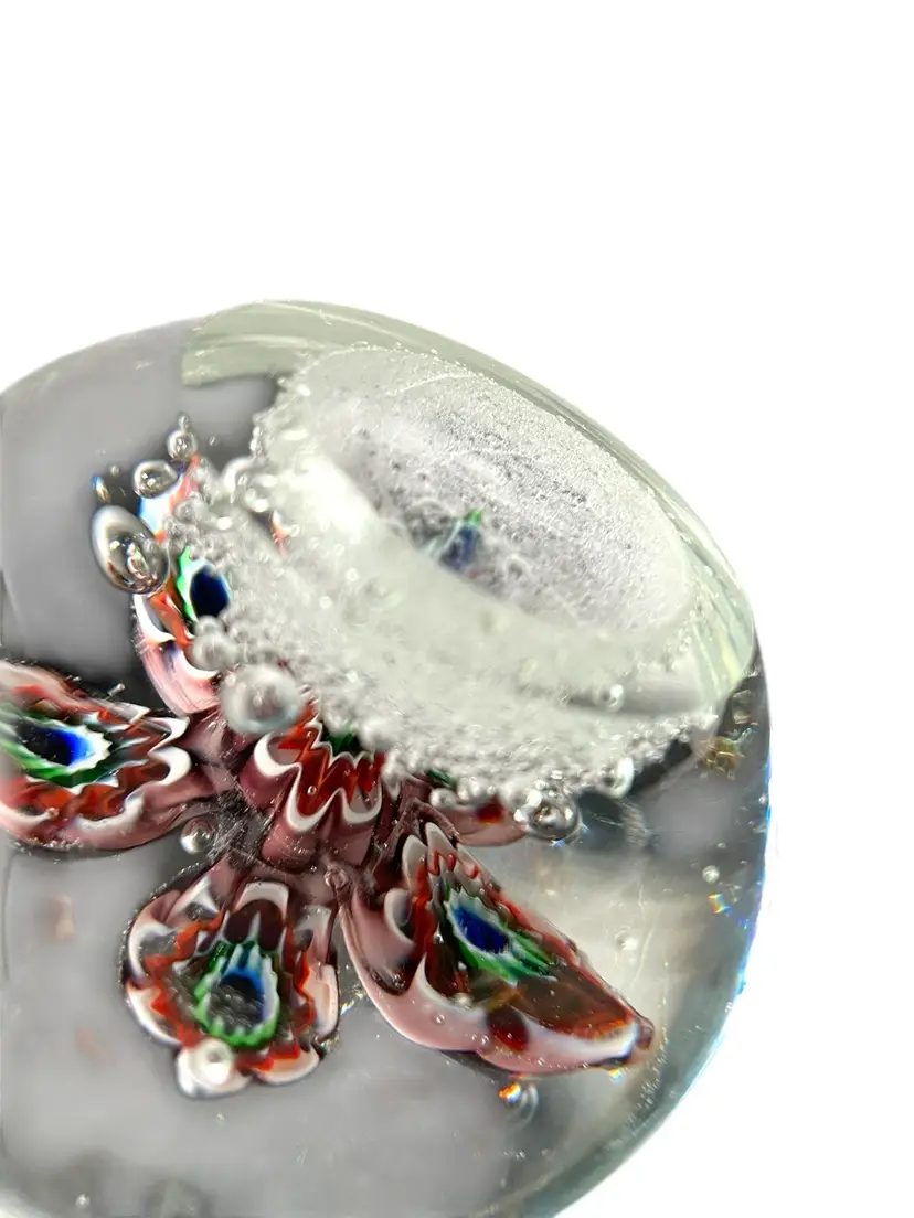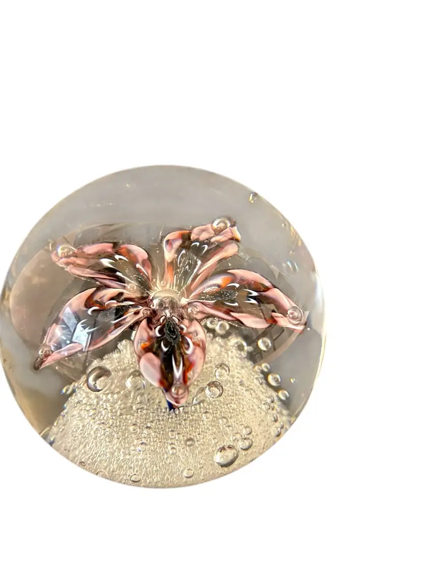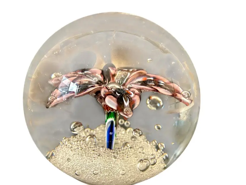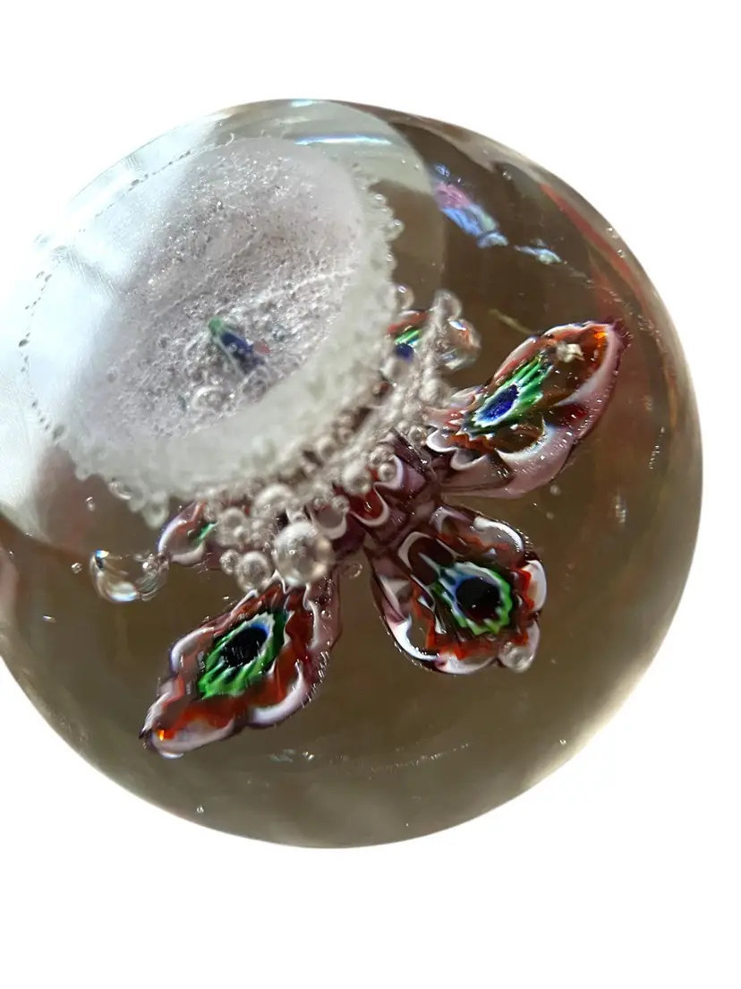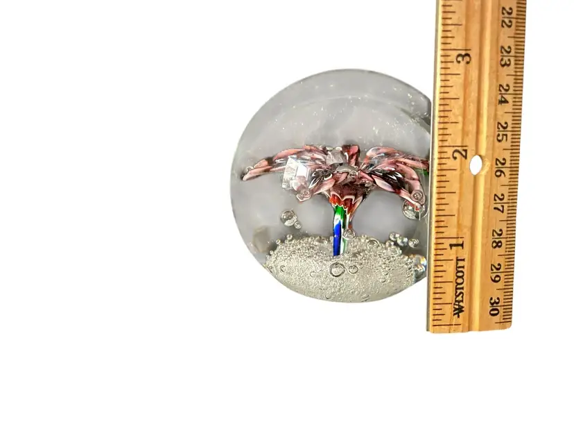 Round diameter 3”, weight 1 lbs, 10.5 oz. Clear, smooth, polished pontil. No chips, cracks or bruises.