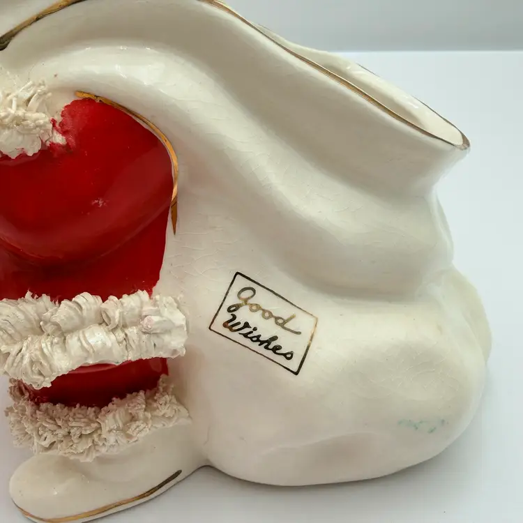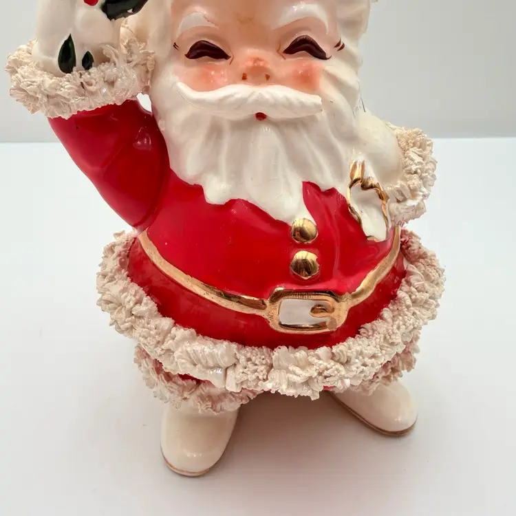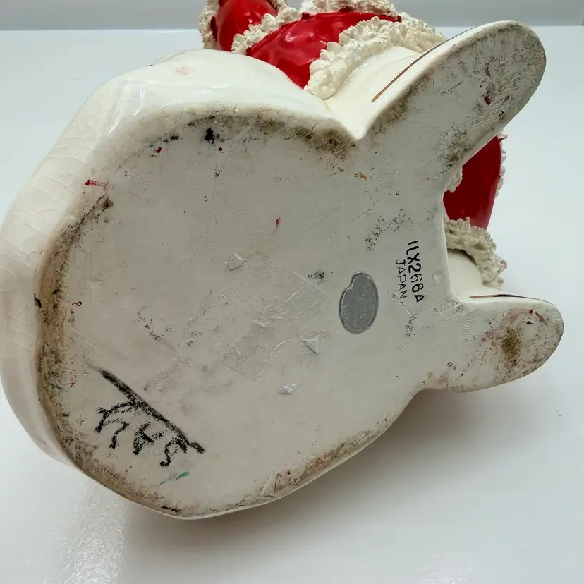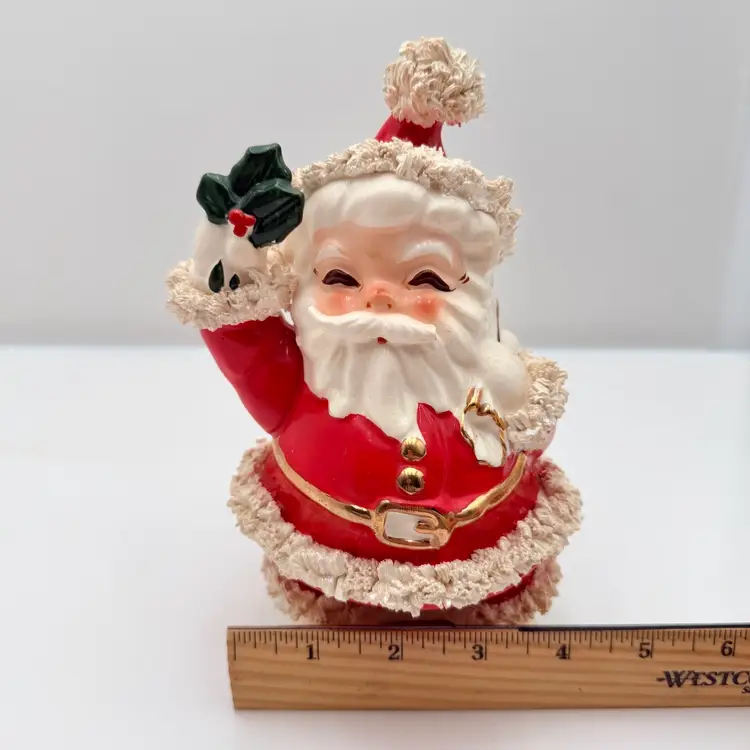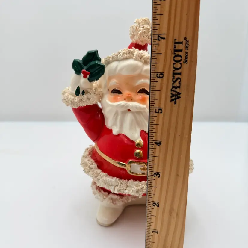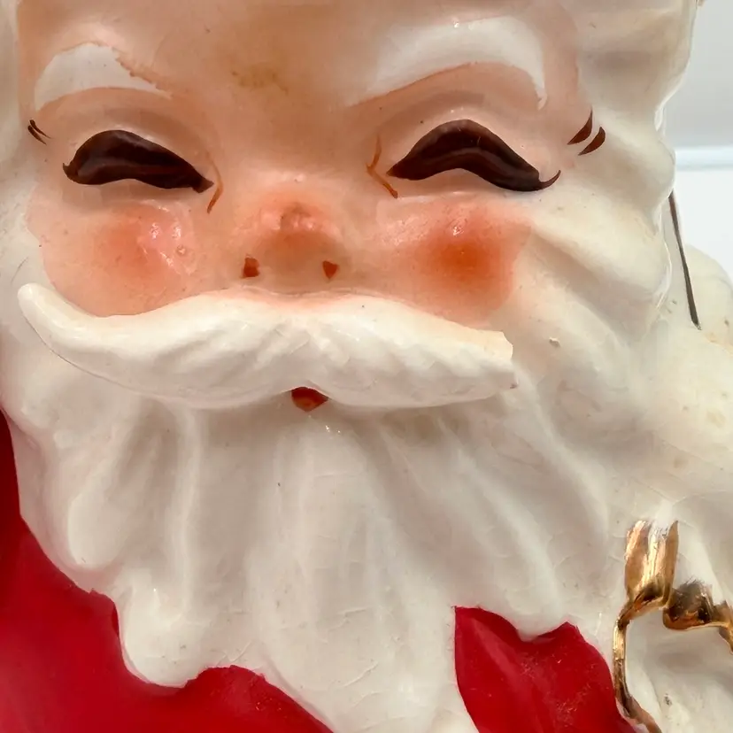 As shown 7.5 inches tall by 4 inches wide Mustache is broken on one side. Some paint loss