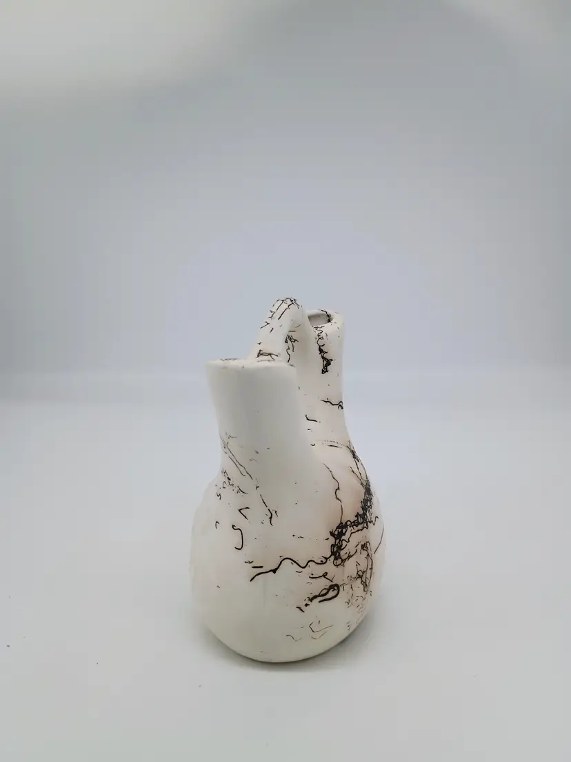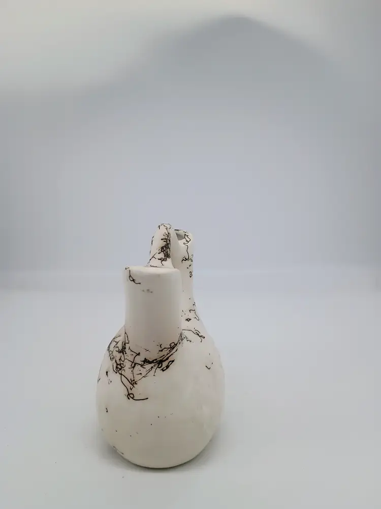 Navajo Horsehair Pottery Wedding Vase Raised Relief Pueblo Design Signed by Artist Steed. This has an unusual Raised Relief Pueblo Scene Design normally these are carved into the clay where as this juts out in 3 dimensional . This is 5 inches tall 4.25 inches side to side and 3 inches front to back. This is preowned No Chips Cracks or Flea Bites, Excellent condition. Ships USPS domestically & UPS wolrdwide